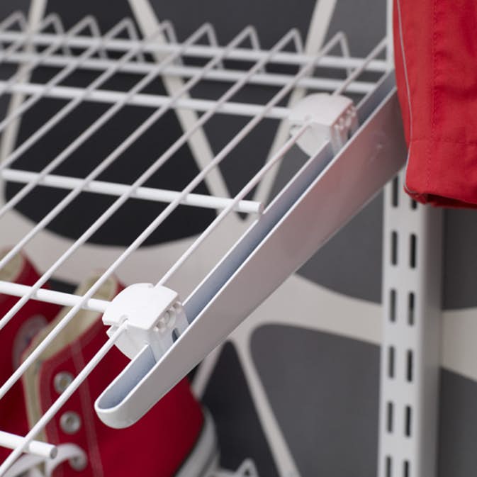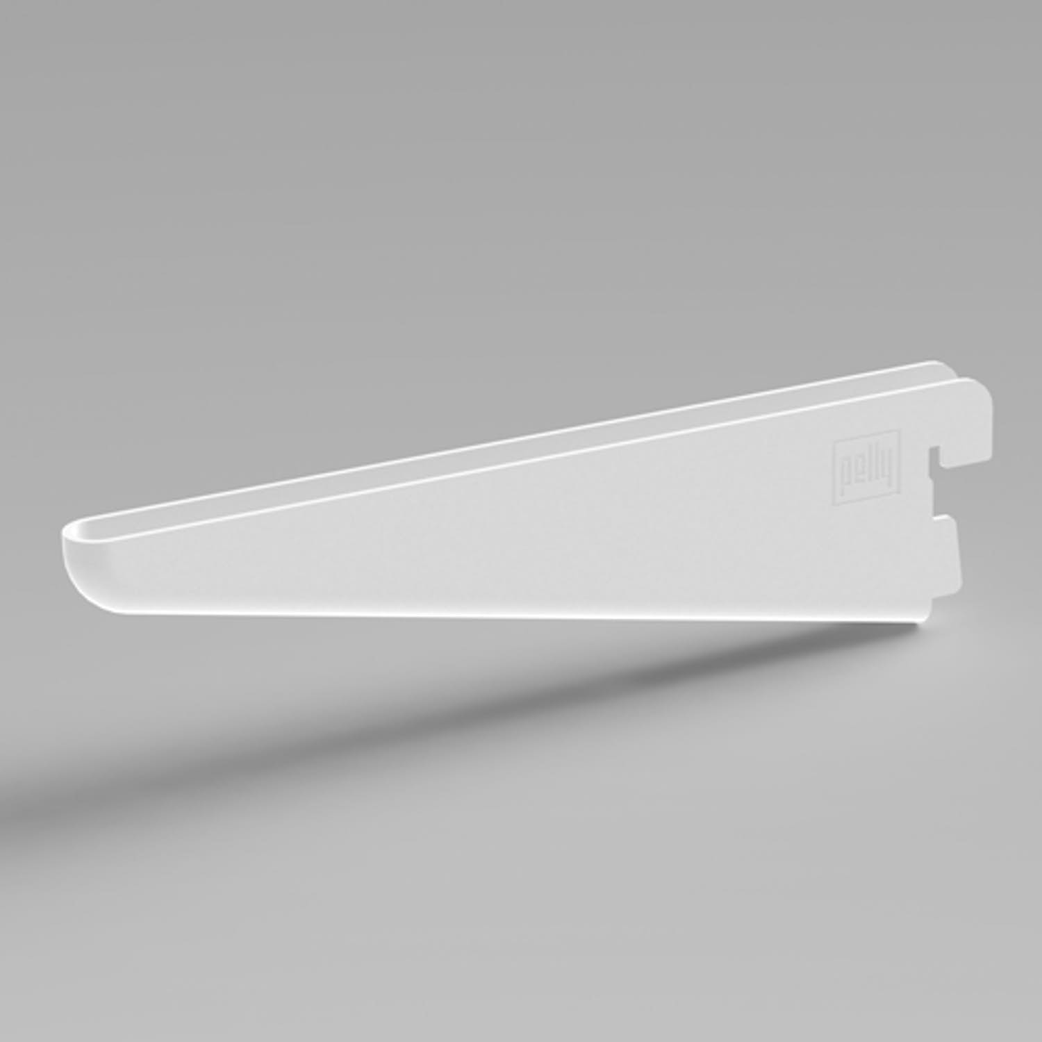 Konsol som passar till hängskena och väggskena. Kombinera med hylla i melamin för att skapa en bra förvaringslösning. Konsolerna finns i olika längder samt i vitt eller silver. Konsolerna säljs styckvis, ska du sätta upp en hylla behöver du två konsoler. Tänk på att välja en konsol som är 0-3 cm kortare än melaminhyllans djup.
