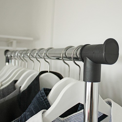 Vi är helnöjda med garderoben, men en av klädstativen hasar ned då man hänger mycket kläder på den | |