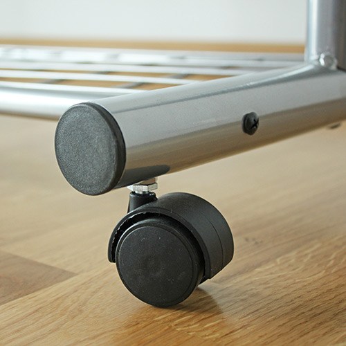 Stativ i stål med plastdetaljer.