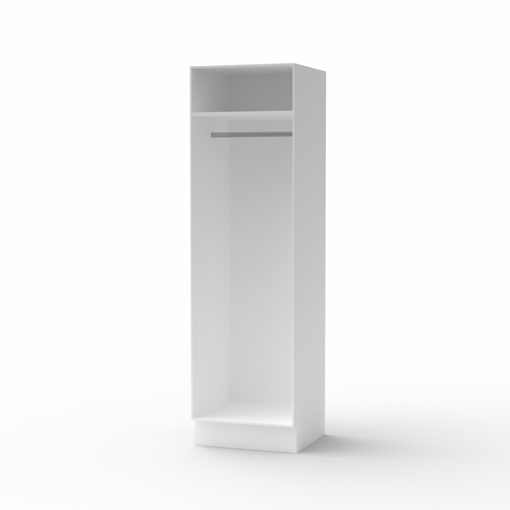 Tillverkat av 16 mm melaminbelagd spånskiva i vitt. Ytan är tålig, lätt att rengöra och håller sig fin länge. Klädstången ger plats för hängande förvaring medan hyllplanet upptill är perfekt för lådor eller vikta plagg.