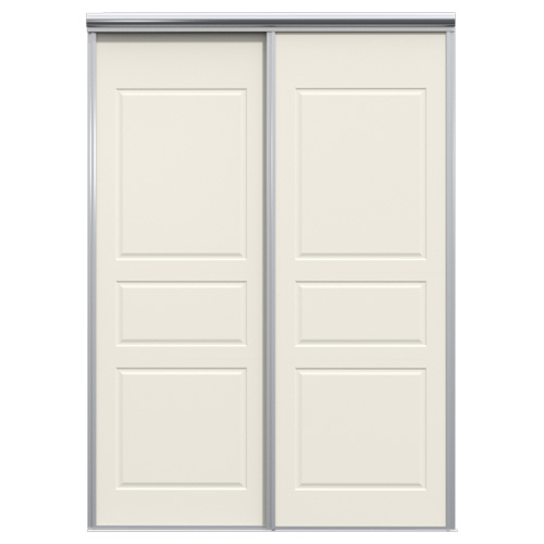 Skjutdörrarna är av 8 mm målad och spårfräst MDF. Grepplist, tak- och golvskena i aluminium.