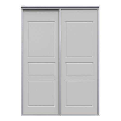 Skjutdörrarna är av 8 mm målad och spårfräst MDF. Grepplist, tak- och golvskena i aluminium.