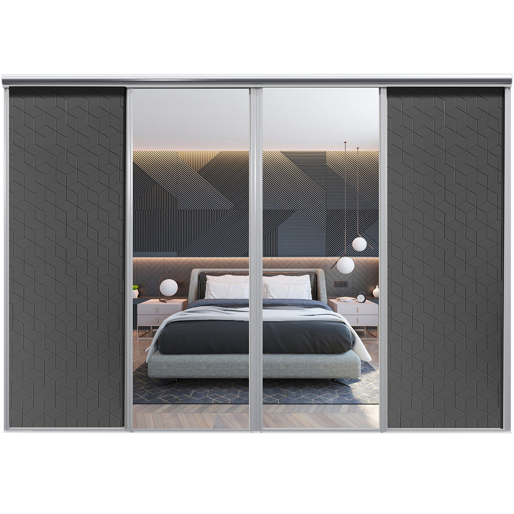 Paketerbjudandet gäller skjutdörrar i serien London och Mix, garderobsinredning och garderobstillbehör. Beställ senast 15 december.Skjutdörrar med vackra geometriska mönster och speglar.