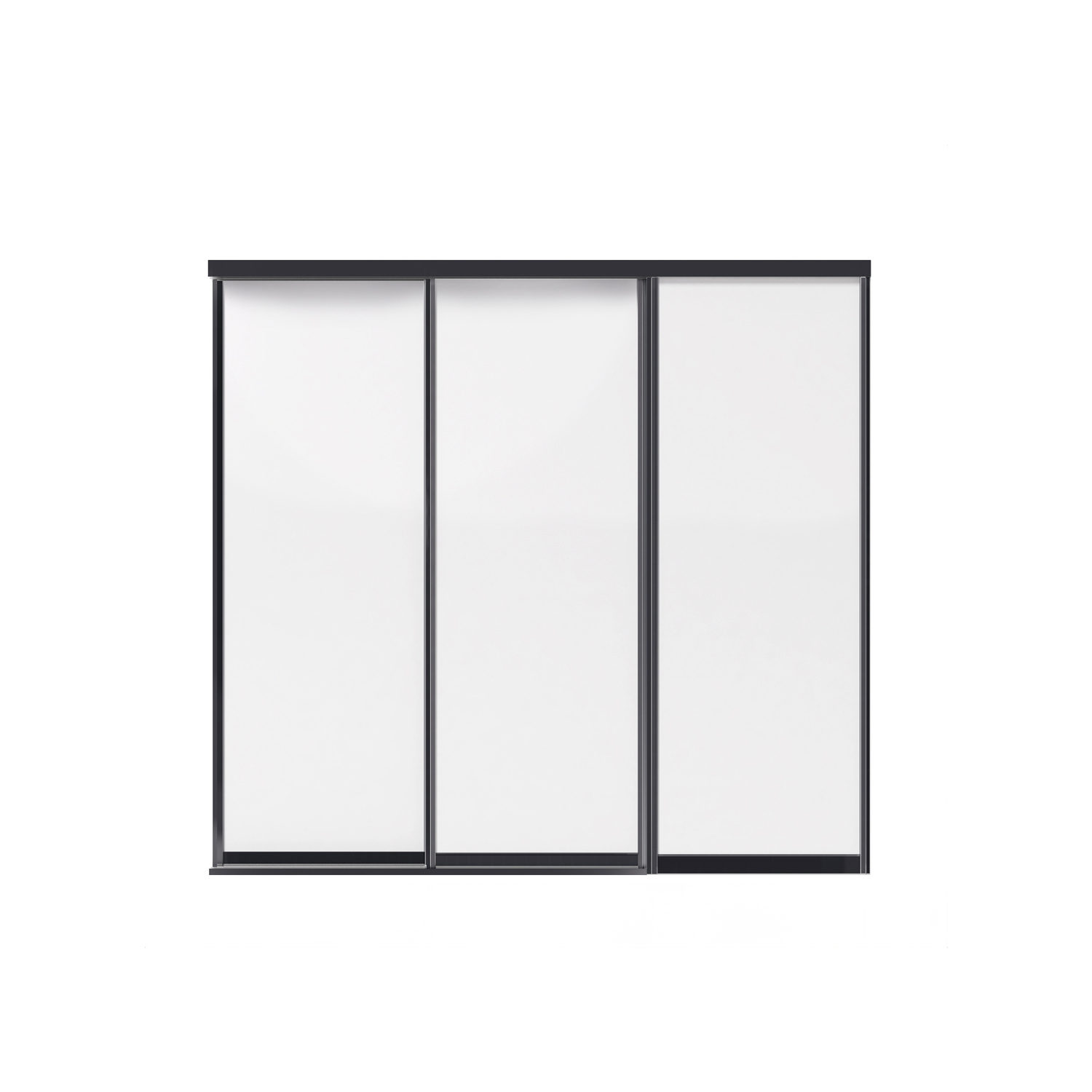 Vi har skapat färdiga paket med skjutdörrar och skenor. Välj bara vilken bredd du önskar täcka med skjutdörrar. Olika bredder ger olika antal skjutdörrar. Väljer du 3 skjutdörrar så löper dessa på en 3-spårsskena vilket ger dig maximal öppning i skjutdörrsgarderoben. Beroende på vilken bredd du väljer på din skjutdörrsgarderob så kan bredderna på dörrarna variera gentemot varandra. Mer information om bredd på dörrarna hittar du i monteringsanvisningen.