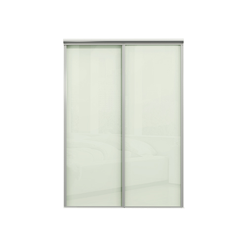 Glasdörrarna är av 4 mm opalvitt floatglas med en säkerhetsfilm på baksidan. Det som finns bakom skjutdörrarna lyser inte igenom. Grepplist, tak- och golvskena i aluminium.