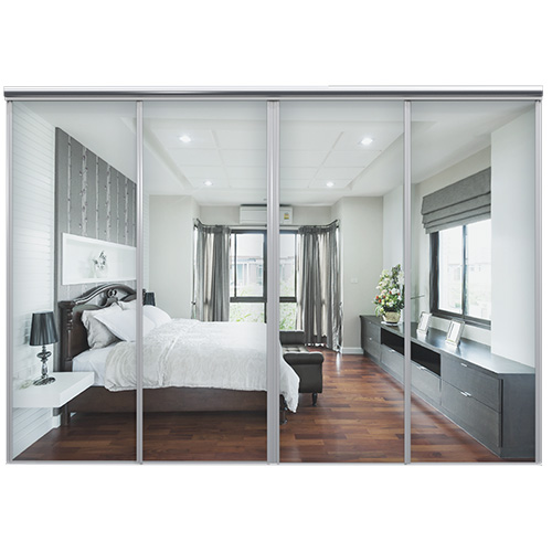 Speglarna är av 4 mm spegelglas med en säkerhetsfilm på baksidan. Grepplist, tak- och golvskena i aluminium.