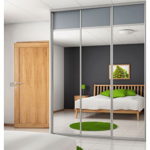 Skjutdörr Spegel är av 4 mm spegelglas med en säkerhetsfilm på baksidan. Toppskivorna är av 10 mm melaminbelagd MDF. Grepplist, tak- och golvskena i aluminium.