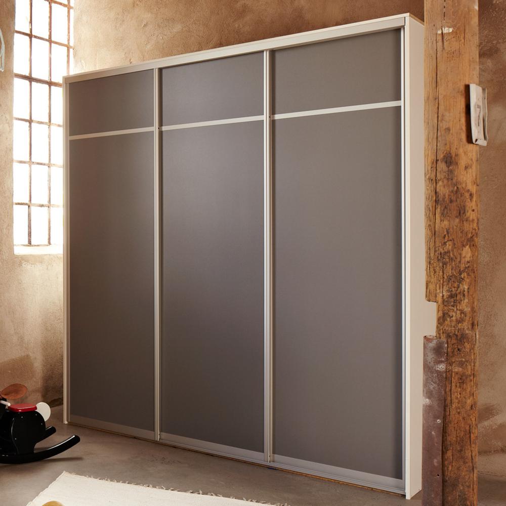 Ovan kan du enkelt välja mellan flera olika bredder och 2, 3 eller 4 skjutdörrar. Väljer man tre skjutdörrar så löper dessa på en 3-spårskena, vilket gör att man får maximal öppning i sin skjutdörrsgarderob.