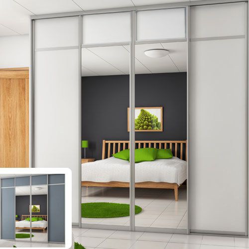 Vi har färdiga paket med skjutdörrar inkl. skenor. Välj vilken bredd du önskar täcka med skjutdörrar, antal dörrar är beräknat utifrån vilken bredd man väljer. Beroende på vilken bredd man väljer på sin skjutdörrsgarderob så varierar bredderna på dörrarna. Information om bredd på dörrarna hittar man i monteringsanvisningen.