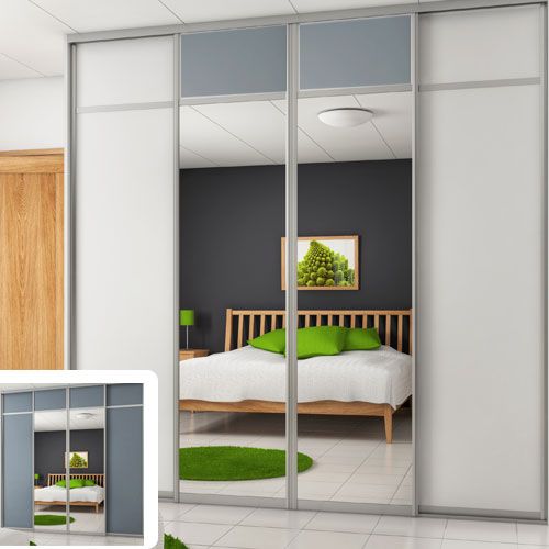 Skjutdörren Vit/Grå är av 10 mm melaminbelagd MDF. Spegelskjutdörren är av 4 mm spegelglas med en säkerhetsfilm på baksidan. Grepplist, tak- och golvskena i aluminium.