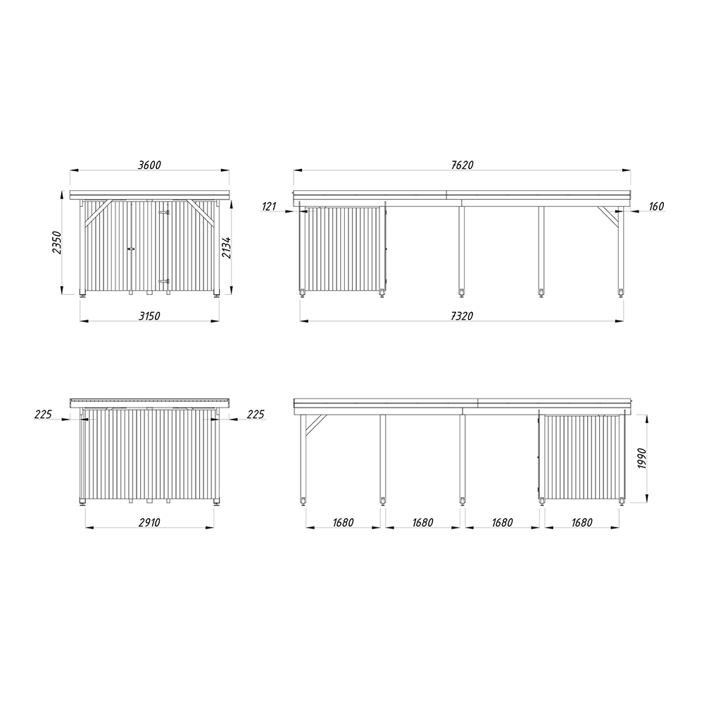Stabil och hållbar konstruktion: Tillverkad av limträ i nordisk gran, är Karl carporten både stabil och hållbar. Med sex rejäla stolpar och tak av spontade brädor kan du lita på att din bil är väl skyddad under många år framöver.