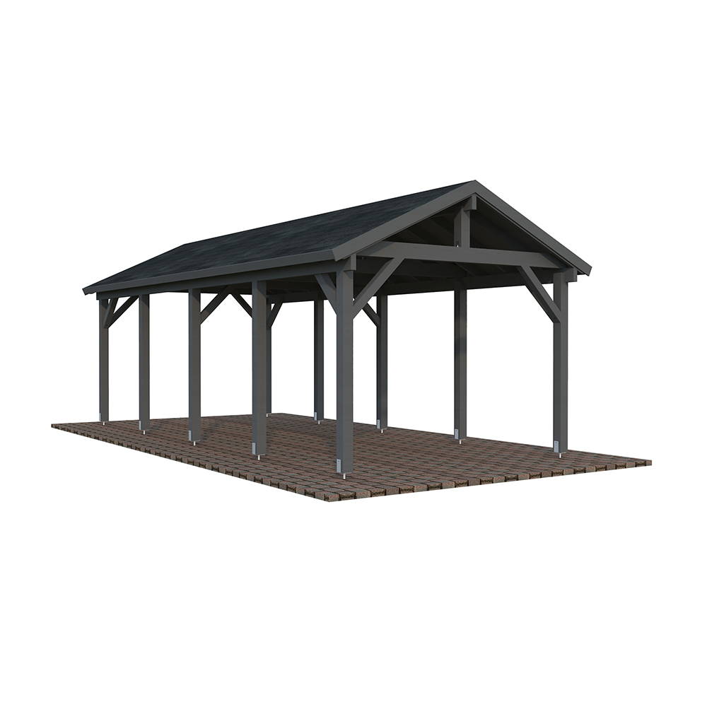 Färdigmålad (mörkgrå + mörkgrå / vit + vit) – Ett komplett färdigmålat utförande där carporten levereras i fabriksapplicerad tvåfärgslösning. Du slipper både grundmålning och täckmålning och får ett snyggt, hållbart resultat med minimalt underhåll.