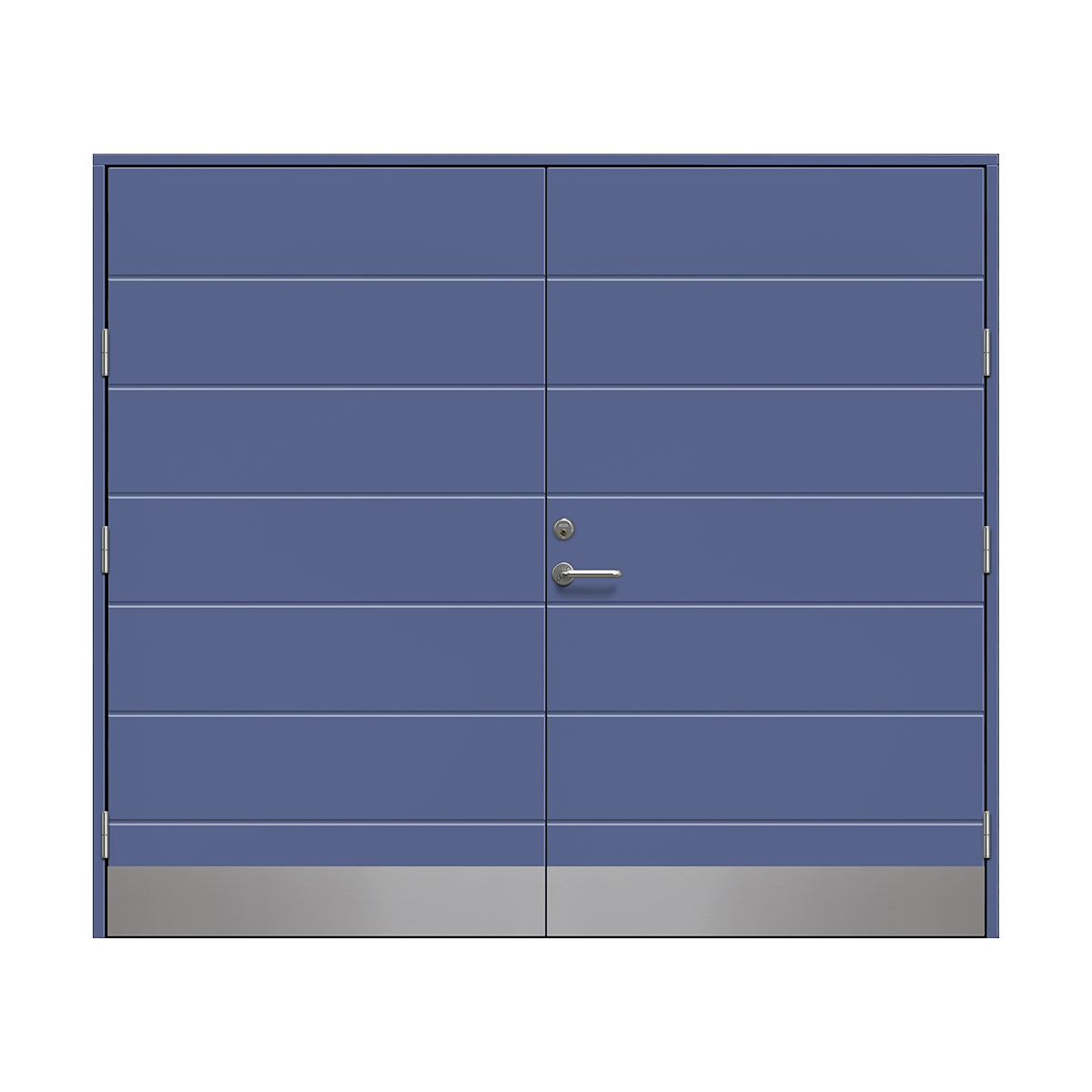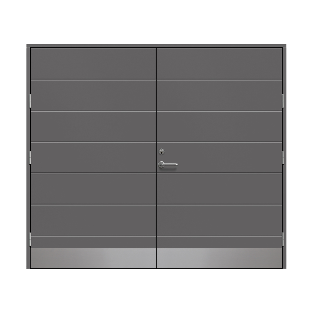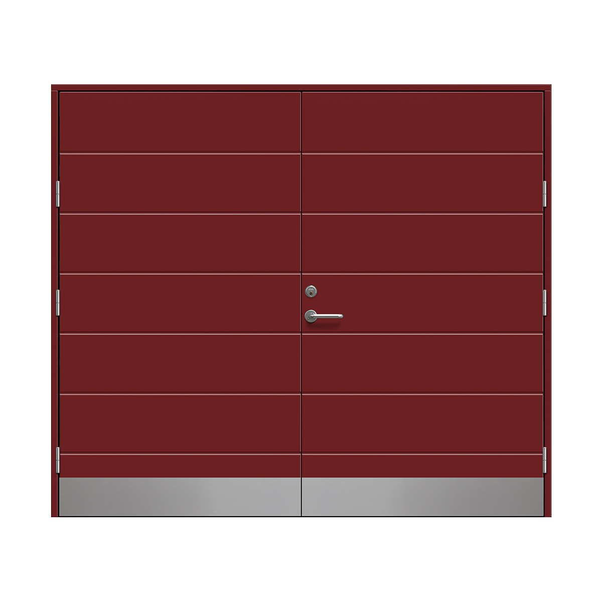 Slagporten finns att välja i flera olika bredder och höjder. De mått som anges är modulmått, för exakta karmyttermått se egenskaper på specifik dörr.