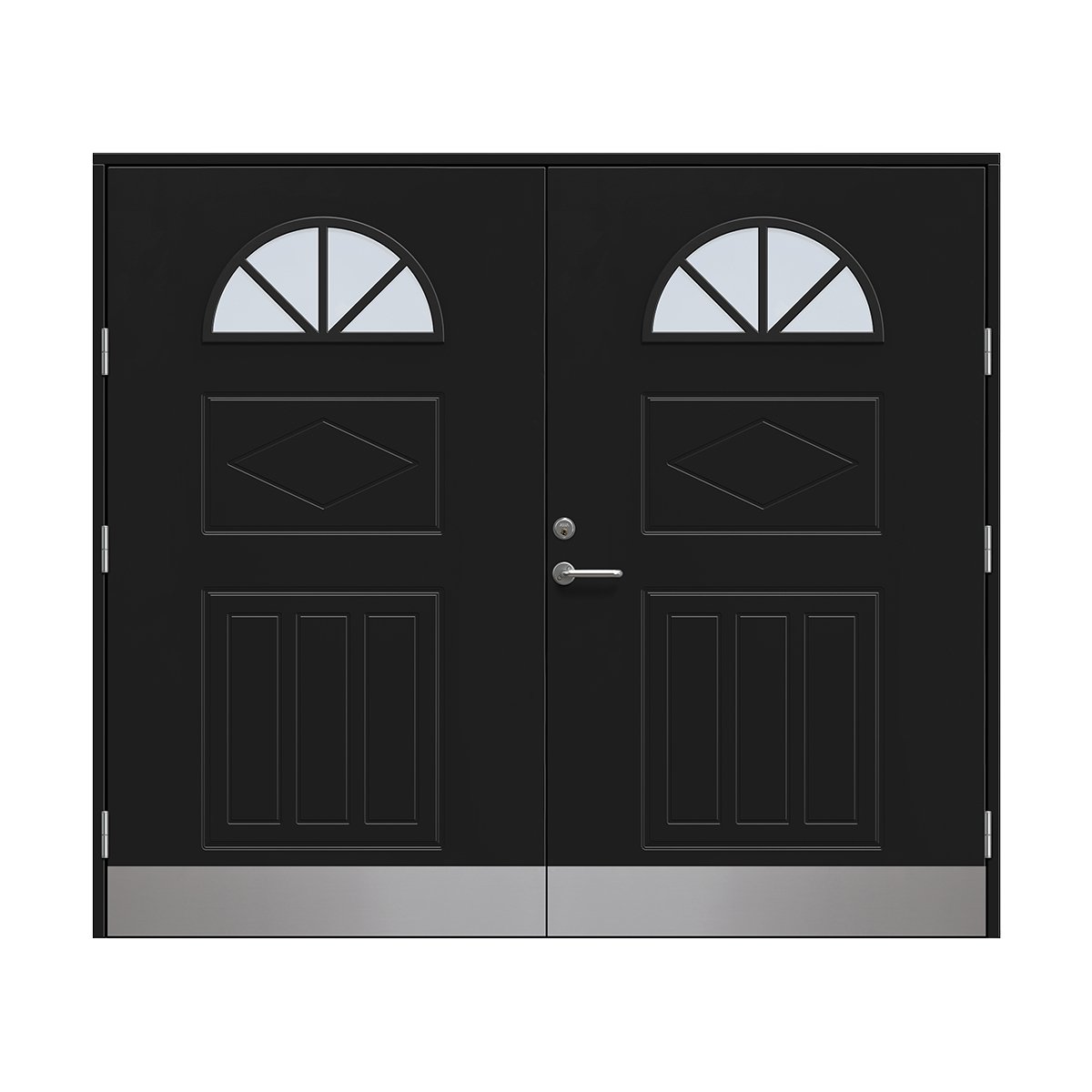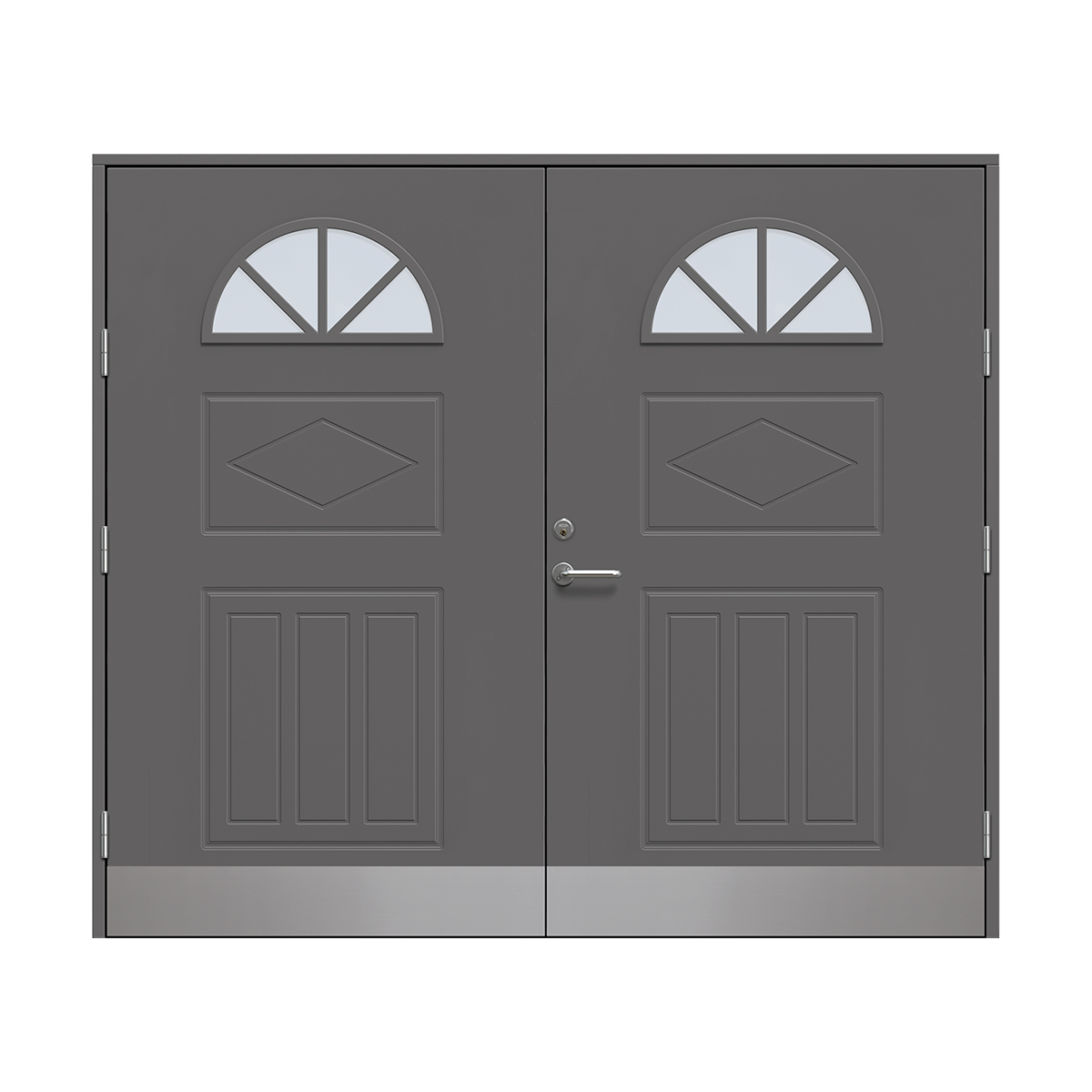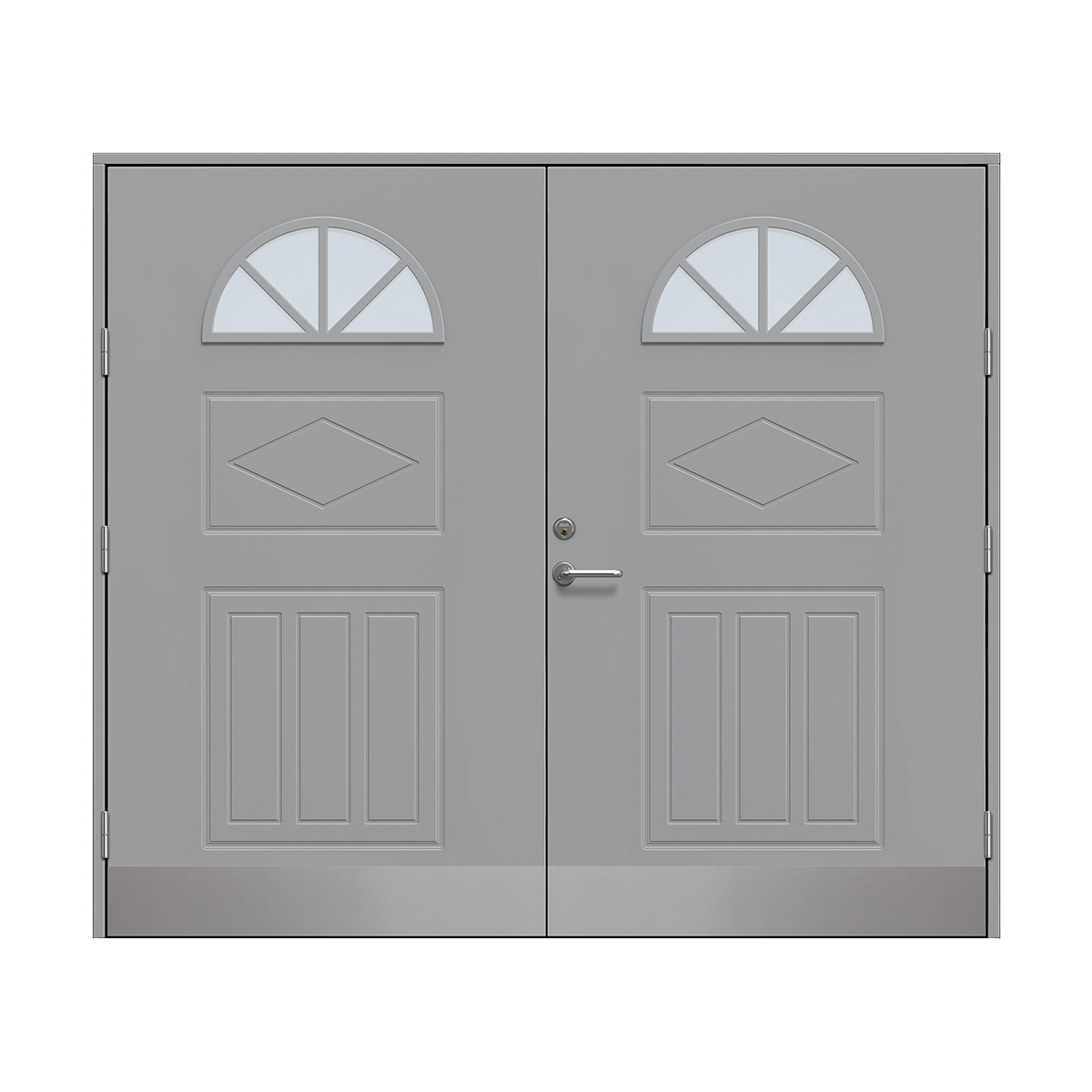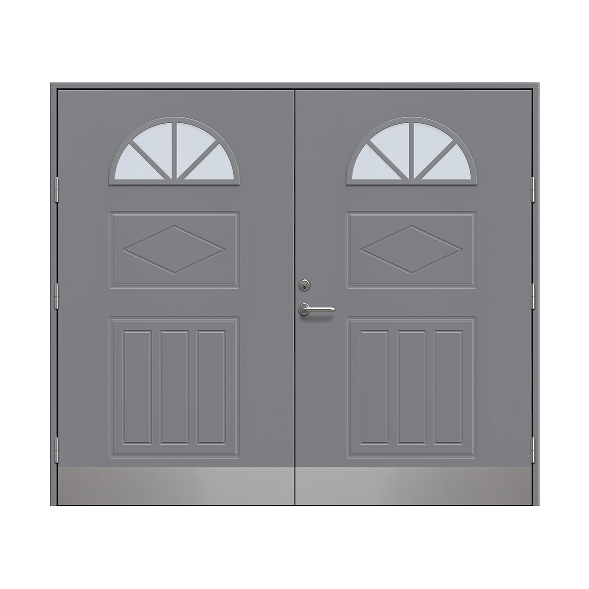 Slagporten finns att välja i flera olika bredder och höjder. De mått som anges är modulmått, för exakta karmyttermått se egenskaper på specifik dörr.