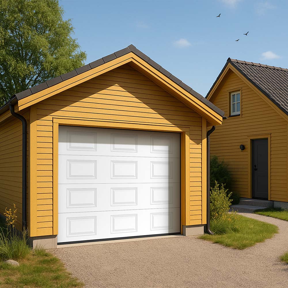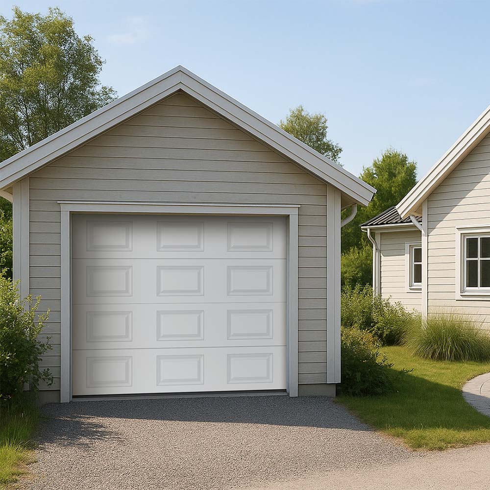 Garageporten finns att välja i flera olika färger och storlekar så att du ska hitta en port som passar för just ditt garage. Alla garageportar i serien är vita på insidan.