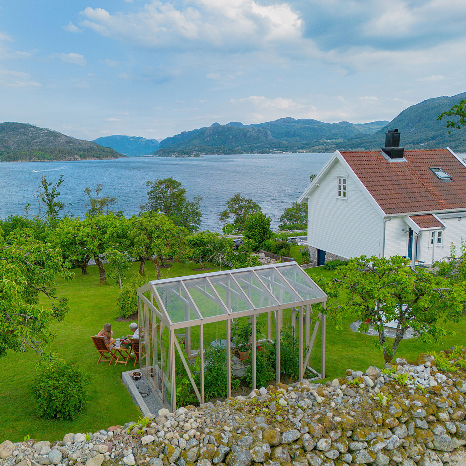 Hemma hos vår kund Svein började det med ett par tomatplantor, och har vuxit till en värld av doft, smak och stillhet. I växthuset Linnea odlas nu tomater, tomatillo, gurka, sallad, persilja, chili och kryddörter. Två sticklingar från en vinranka planterad redan 1947 har slagit rot och ger sin första skörd i år.