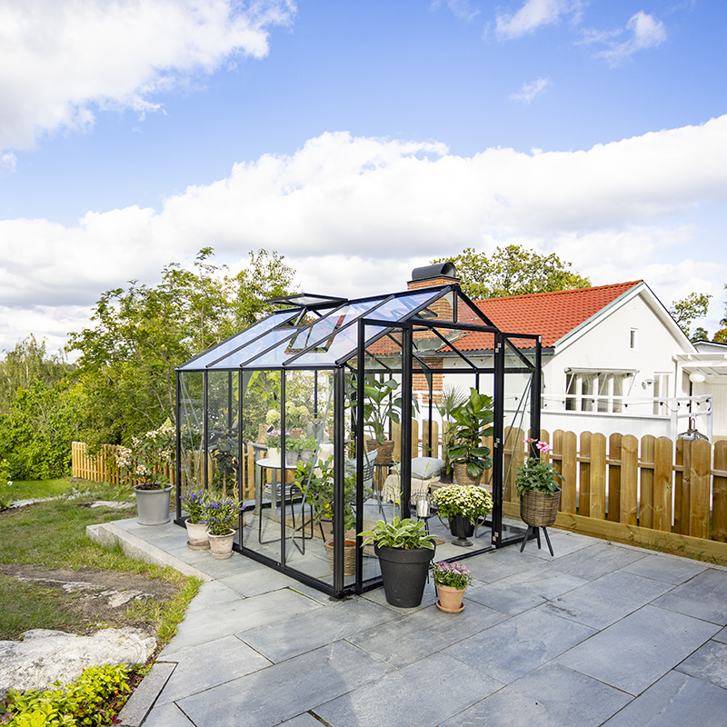 – Vi ville ha ett växthus som känns robust och genomtänkt, inte något halvdant. Olivia är stabilt och välbyggt, samtidigt nätt och snyggt. Vi är verkligen jättenöjda med valet.