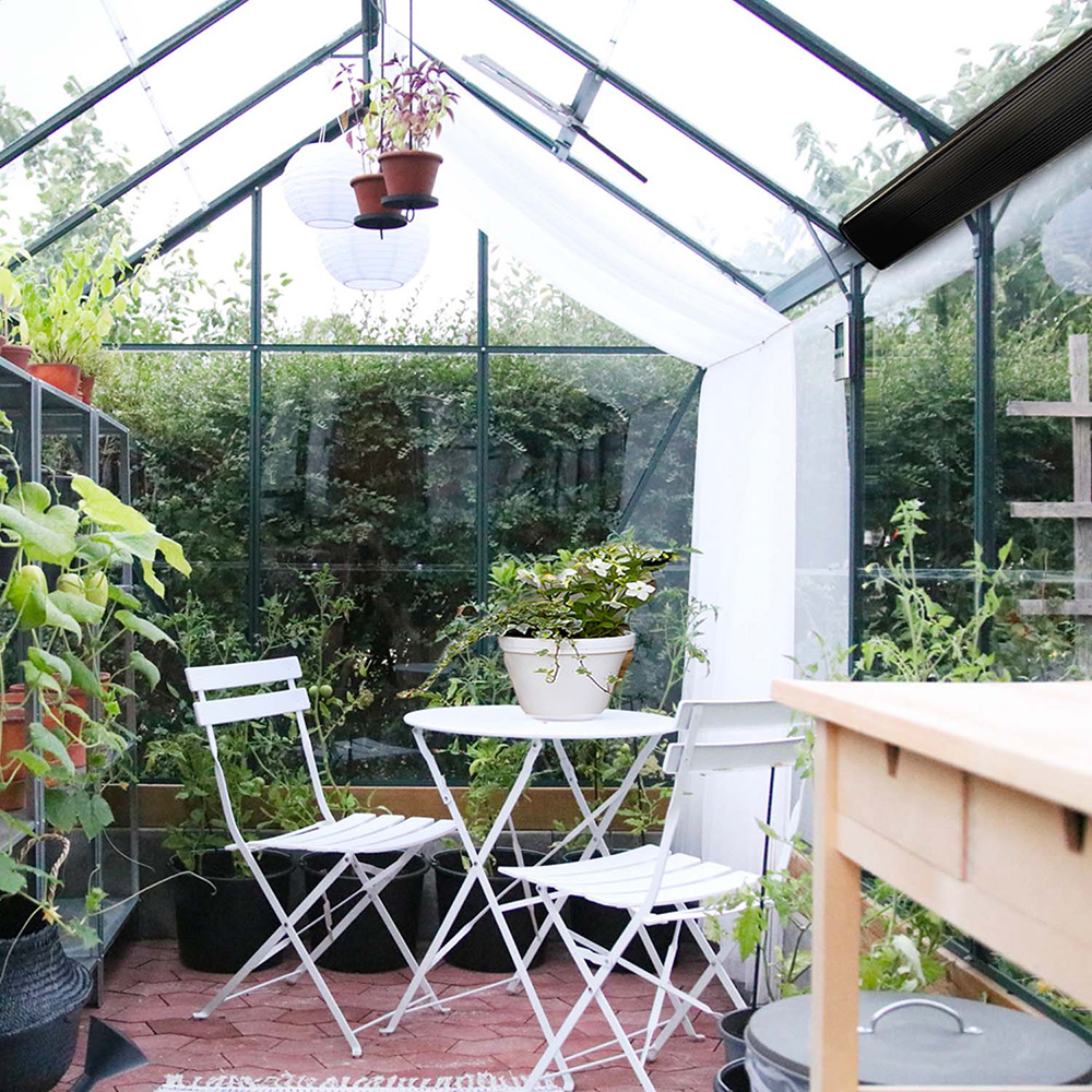Denna terrassvärmare är en kombination av elegans och effekt och passar perfekt på din inglasade balkong, växthuset eller i det inglasade uterummet.