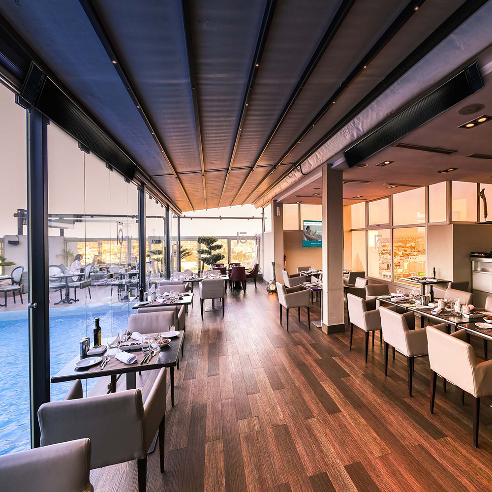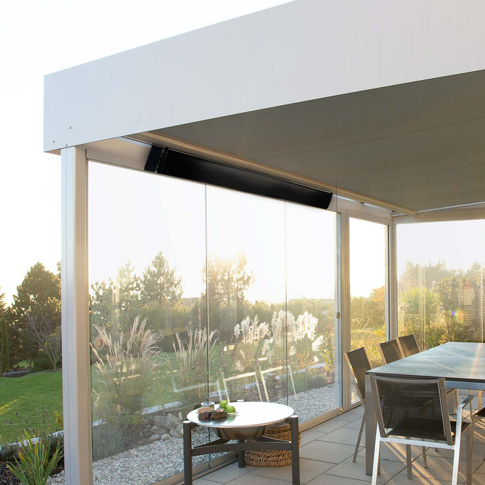 Denna terrassvärmare är en kombination av elegans och effekt och passar perfekt på din inglasade balkong, växthuset eller i det inglasade uterummet.