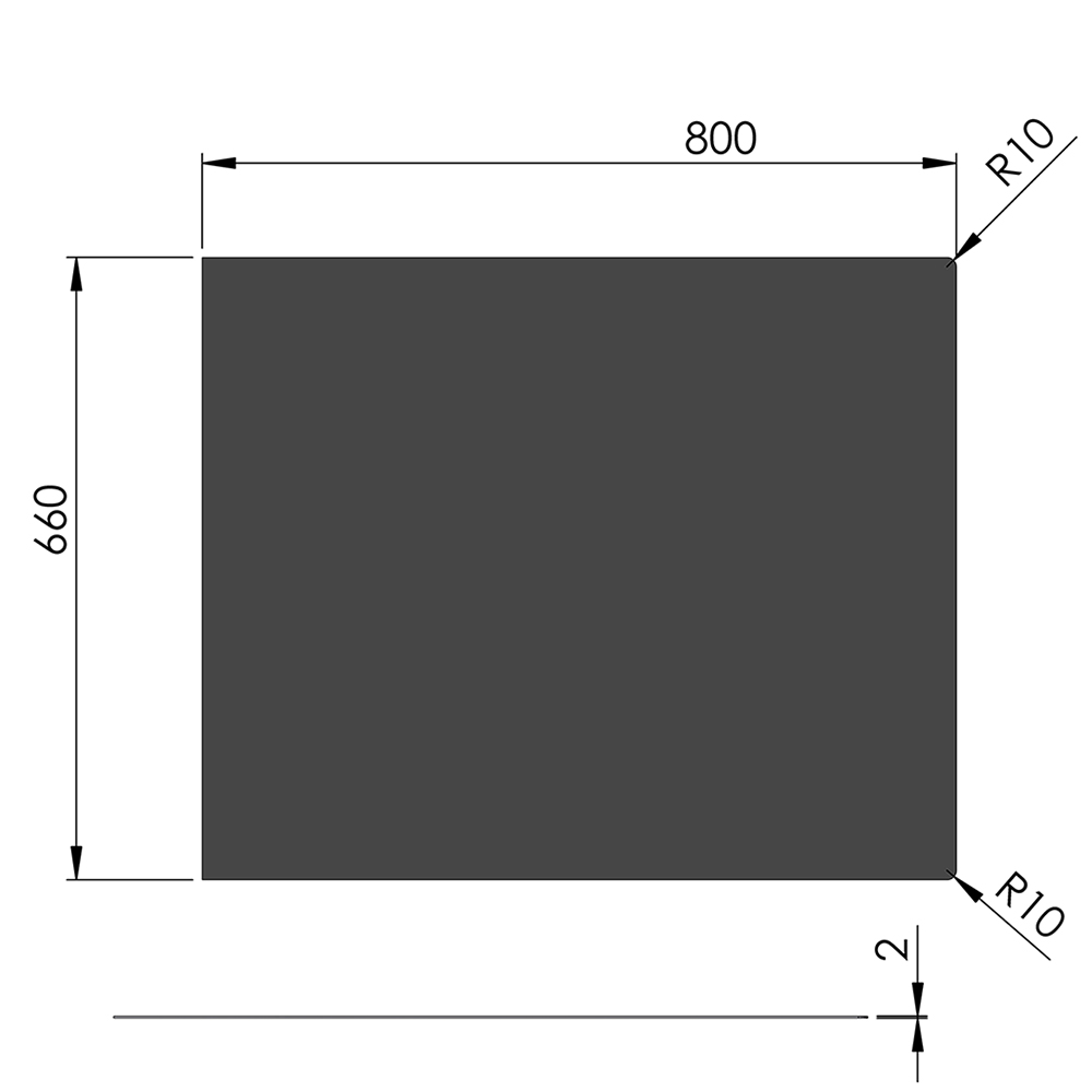 Golvplåten är tillverkad i 2 mm tjock plåt och har måtten 660 x 800 mm.