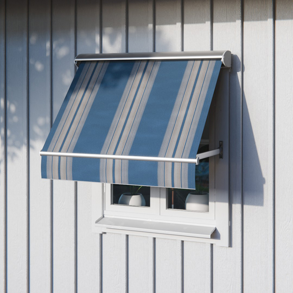 Safir 501 är för dig som gillar fönstermarkiser med mycket färg och mönster. Väven har ränder i olika nyanser av beige och blått, en härlig färgkombination.