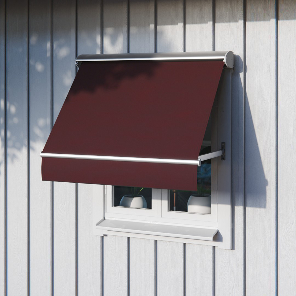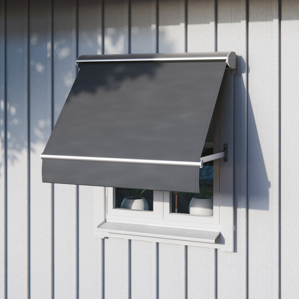 Granat 101 fönstermarkis har ett enfärgat ljusgrått tyg som passar de flesta husfasader. Behaglig skugga med en fönstermarkis av hög kvalitet.