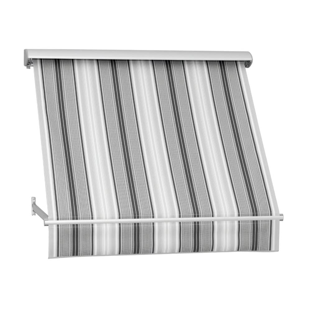 Fönstermarkis Granat 501 har en väv med ränder i olika ljusgråa nyanser. Tyget är vatten- och smutsavvisande.