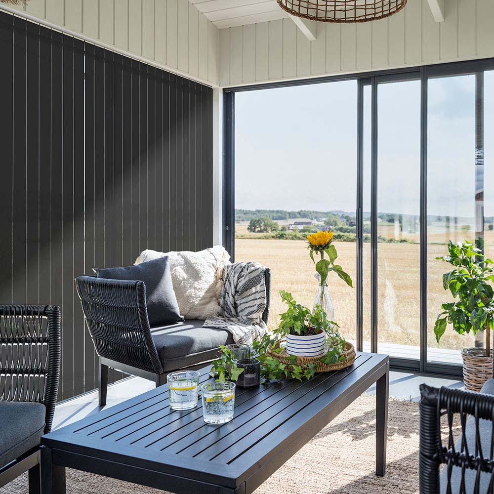 Lux Antracit är en intensivt mörkt grå lamell med en struktur likt ett vävt tyg som skapar en väldigt ombonad känsla. Den stänger ute de starkaste solstrålarna och skapar en behaglig inomhusmiljö utan att vara mörkläggande. LUX Antracit passar väl både inomhus som i uterummet och är en riktigt snygg inredningsdetalj med sin trendiga framtoning.