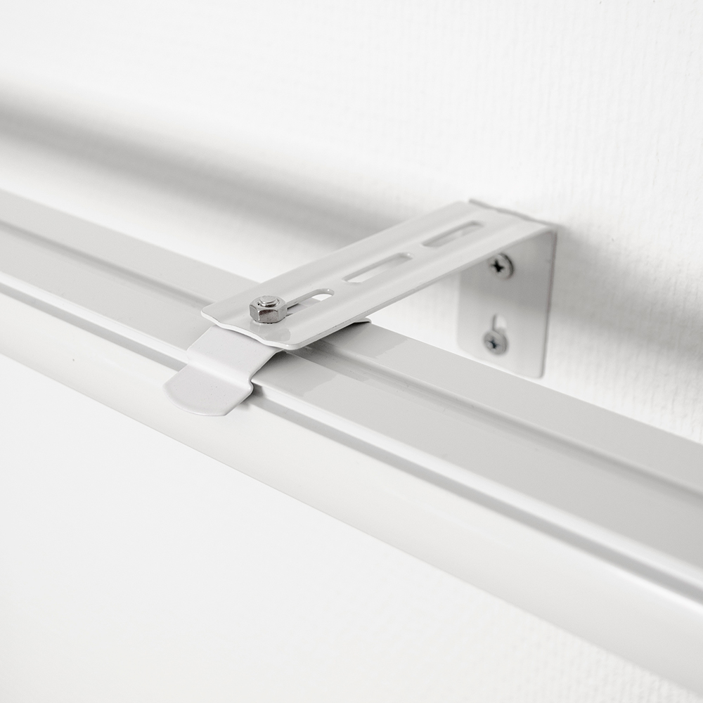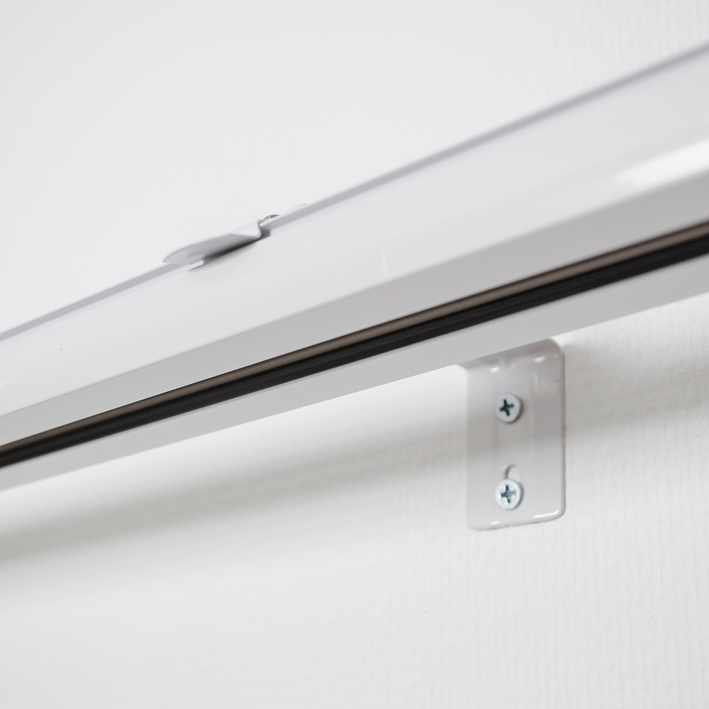 Gardinerna är enkla att montera och regleras i små steg genom en drag och -vridstång vilket ger dig full kontroll på ljusinsläppet och insynen. Den vita skenan bygger ut 12 cm från väggen inklusive sitt väggfäste.