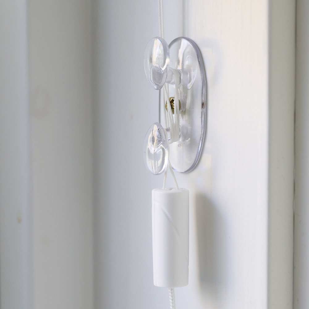 Dålig magnet där skruven sitter till vänster på plissegardinen. |