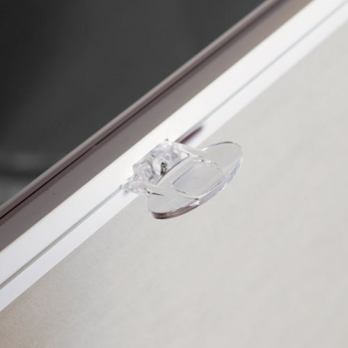 Dålig magnet där skruven sitter till vänster på plissegardinen. |