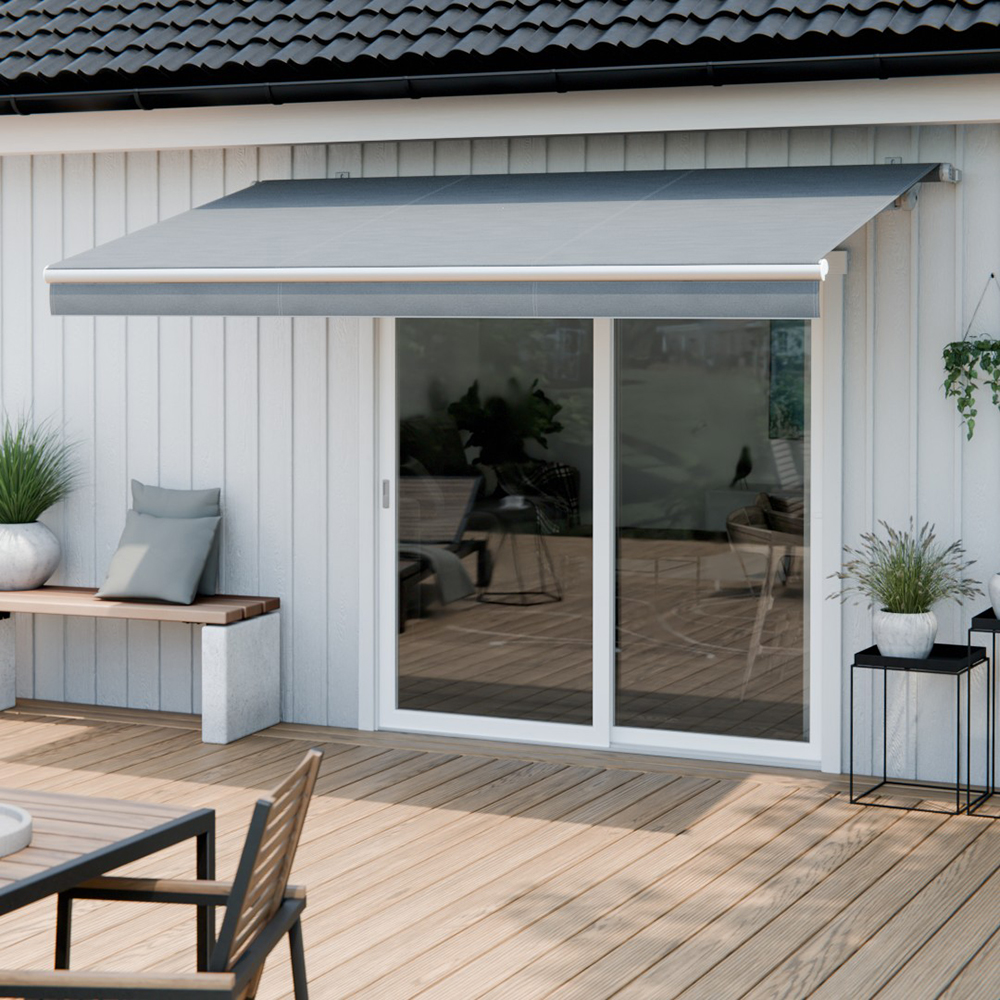 Njut av svalkande skugga på din uteplats med våra terrassmarkiser.