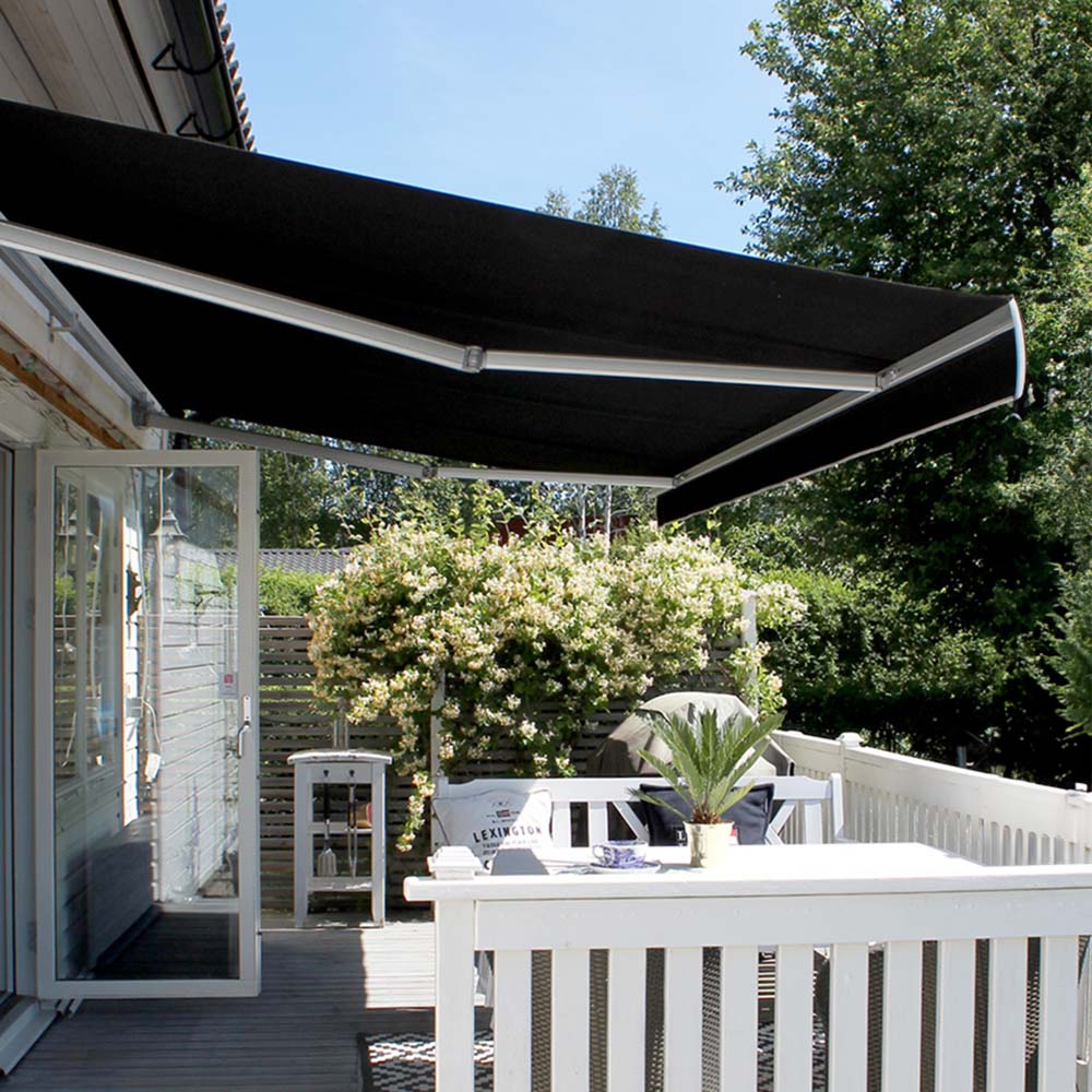Njut av svalkande skugga på din uteplats med våra terrassmarkiser.