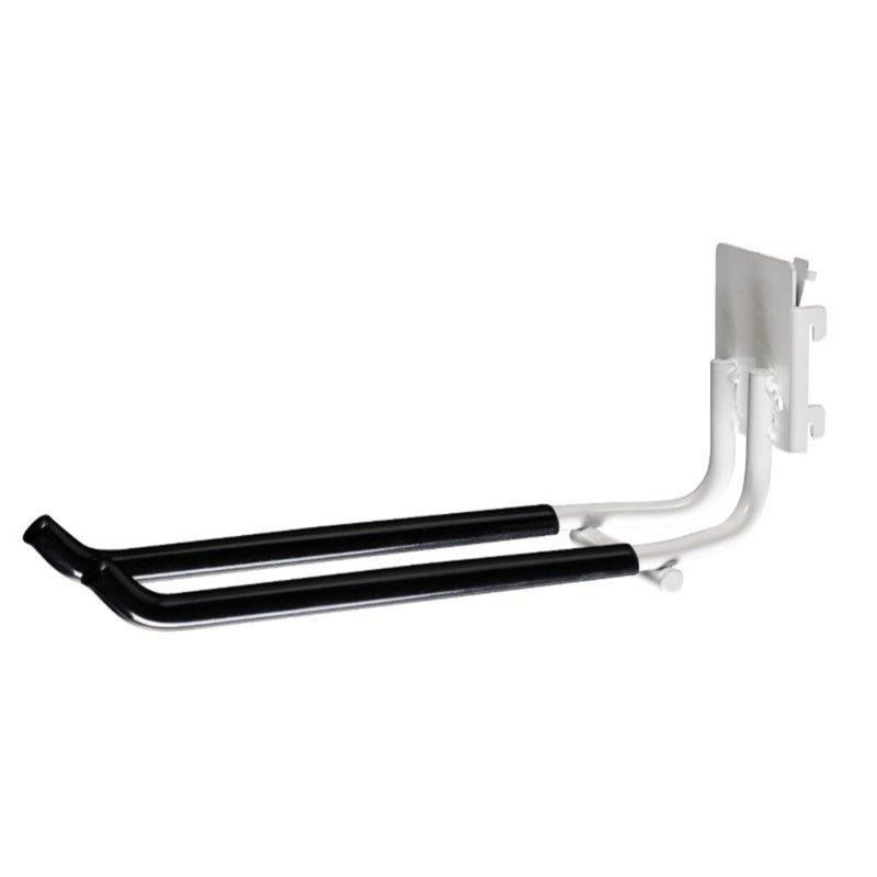 Rak redskapskrok med dubbla hållare för upphängning av tyngre verktyg och utrustning. Hakas på plats i Kroklist eller på förvaringstavla.