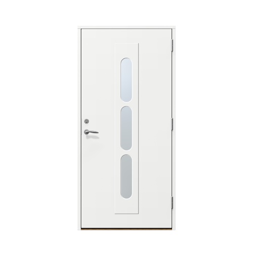 KULÖR Vattenbaserad målningsteknik. Vi rekommenderar inte ommålning av ytterdörren eftersom glaslist och dörr är i olika material och kan reagera olika på den färg som används. Observera att en ytterdörr i mörk kulör ska monteras skyddad från direkt starkt solljus och hög värme för att undvika skevhet och solblekning.