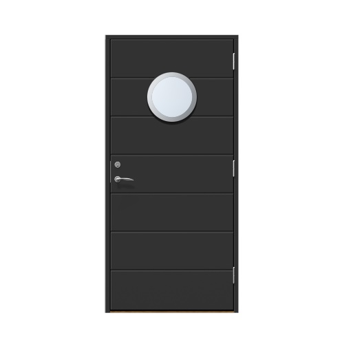 Lerberget klimatdörr med ett båtfönster samt vacker spårfräst utsida.