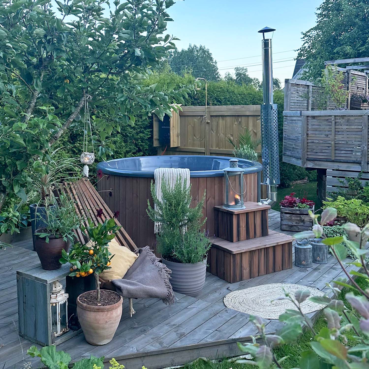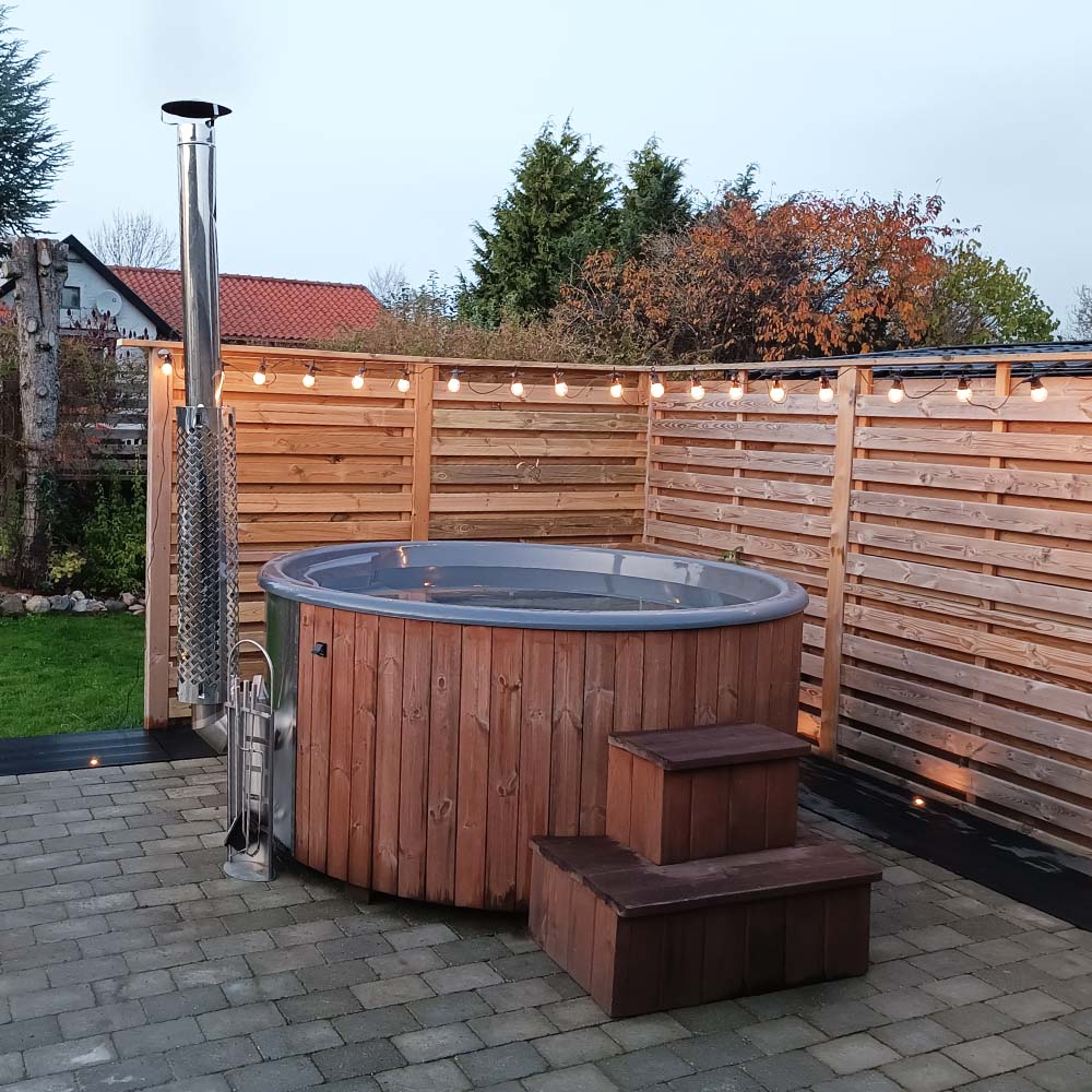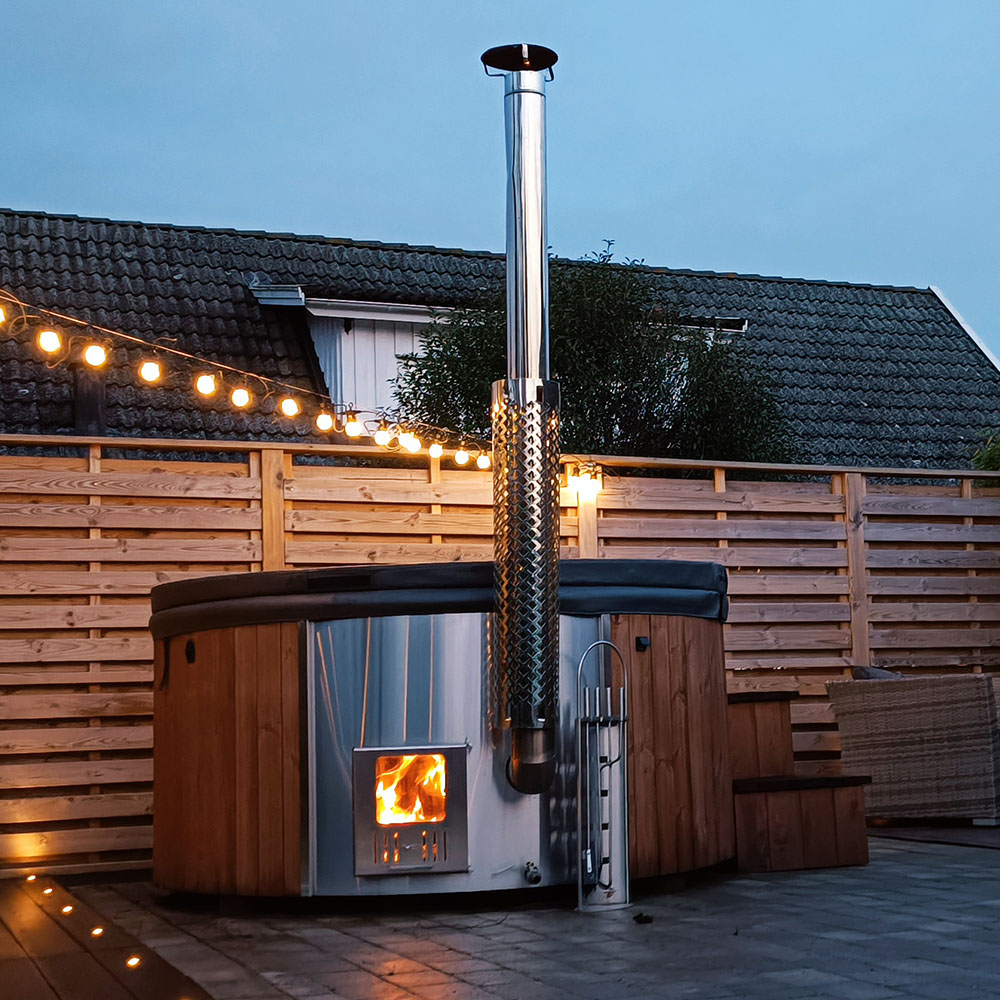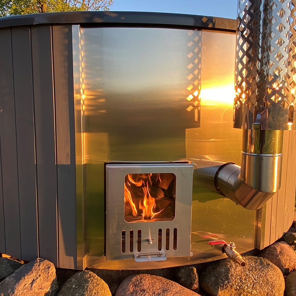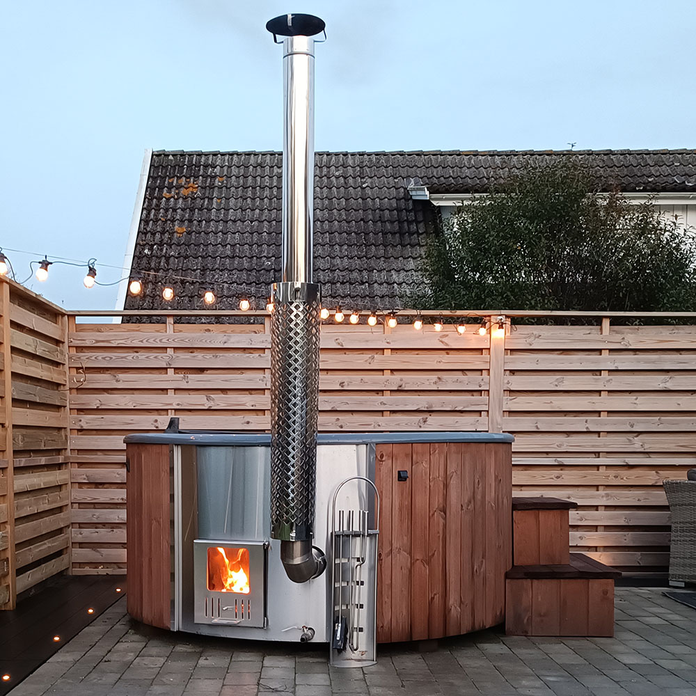Den smarta konstruktionen med en vedeldad kamin gör att du kan placera din badtunna även på ställen som inte är lika lättåtkomliga eftersom du inte behöver tillgång till el. Varför inte placera din badtunna på den där vackra platsen längst bort på tomten som inte riktigt nyttjas idag?