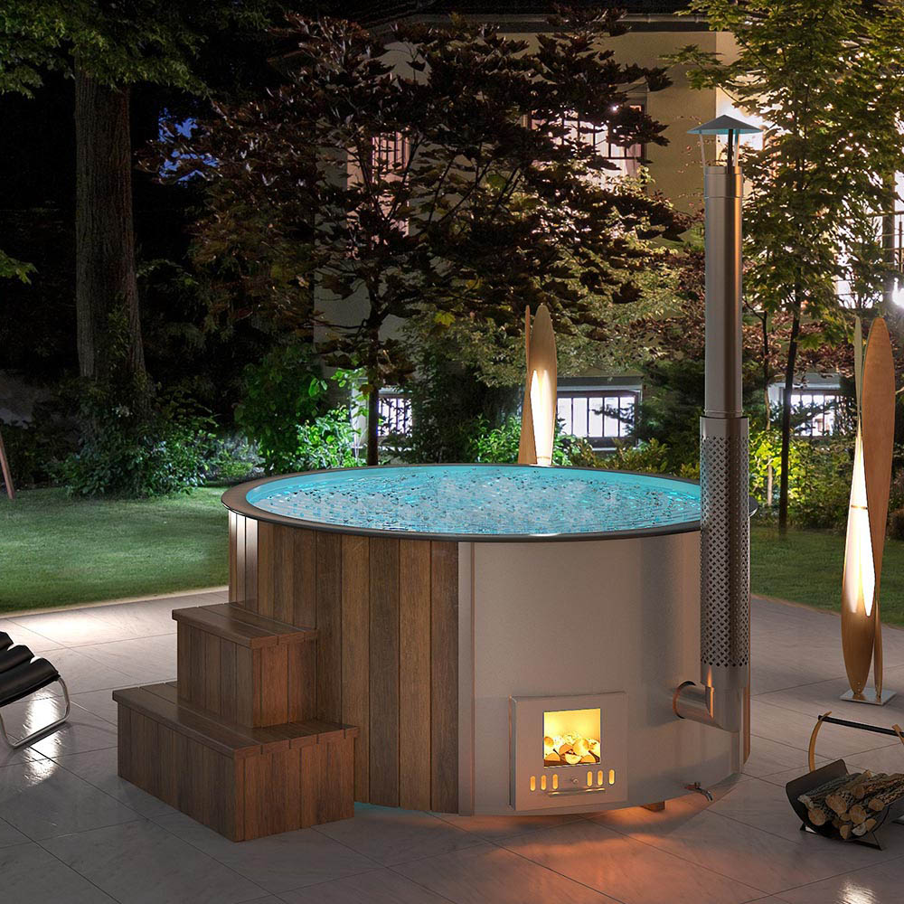 Den smarta konstruktionen med en vedeldad kamin gör att du kan placera din badtunna även på ställen som inte är lika lättåtkomliga eftersom du inte behöver tillgång till el. Varför inte placera din badtunna på den där vackra platsen längst bort på tomten som inte riktigt nyttjas idag?