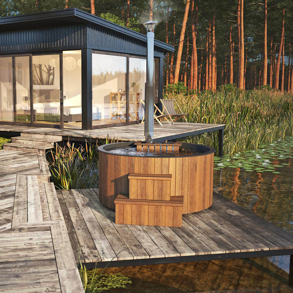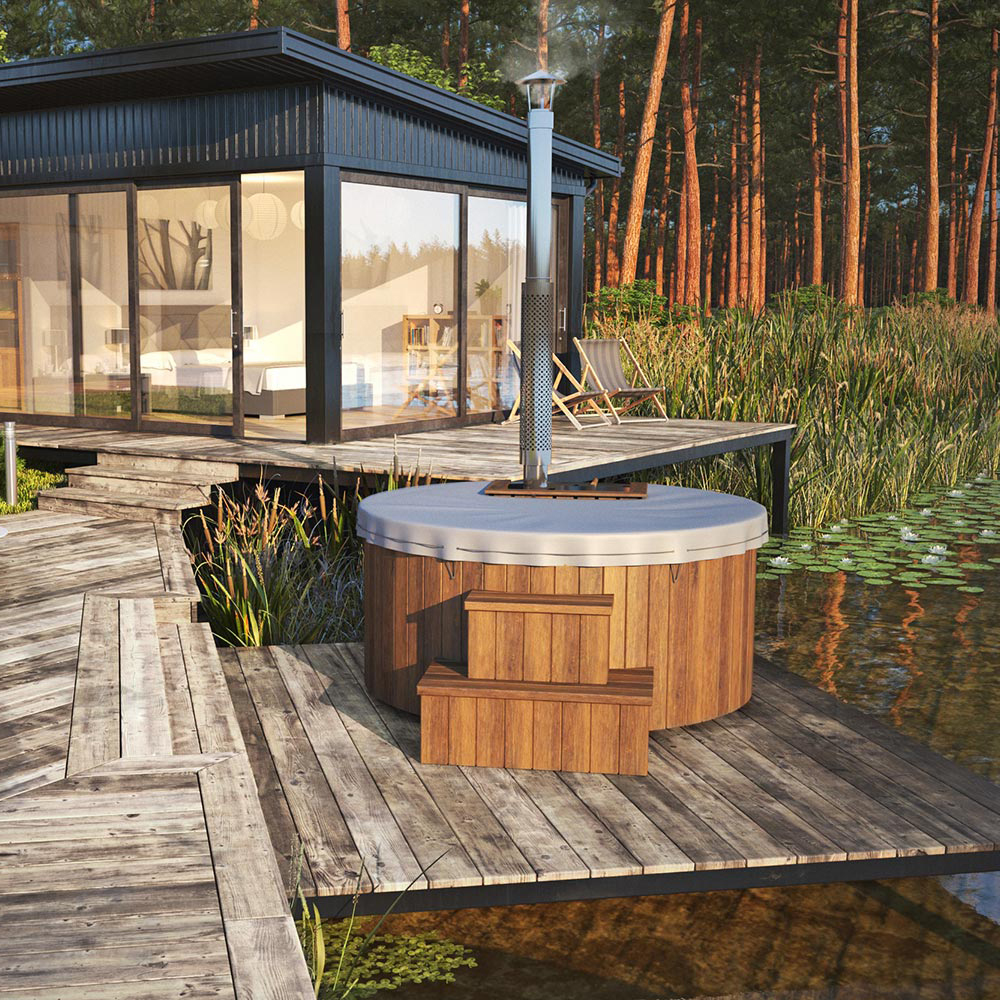 Den smarta konstruktionen med en vedeldad kamin gör att du kan placera din badtunna även på ställen som inte är lika lättåtkomliga eftersom du inte behöver tillgång till el. Varför inte placera din badtunna på den där vackra platsen längst bort på tomten som inte riktigt nyttjas idag?