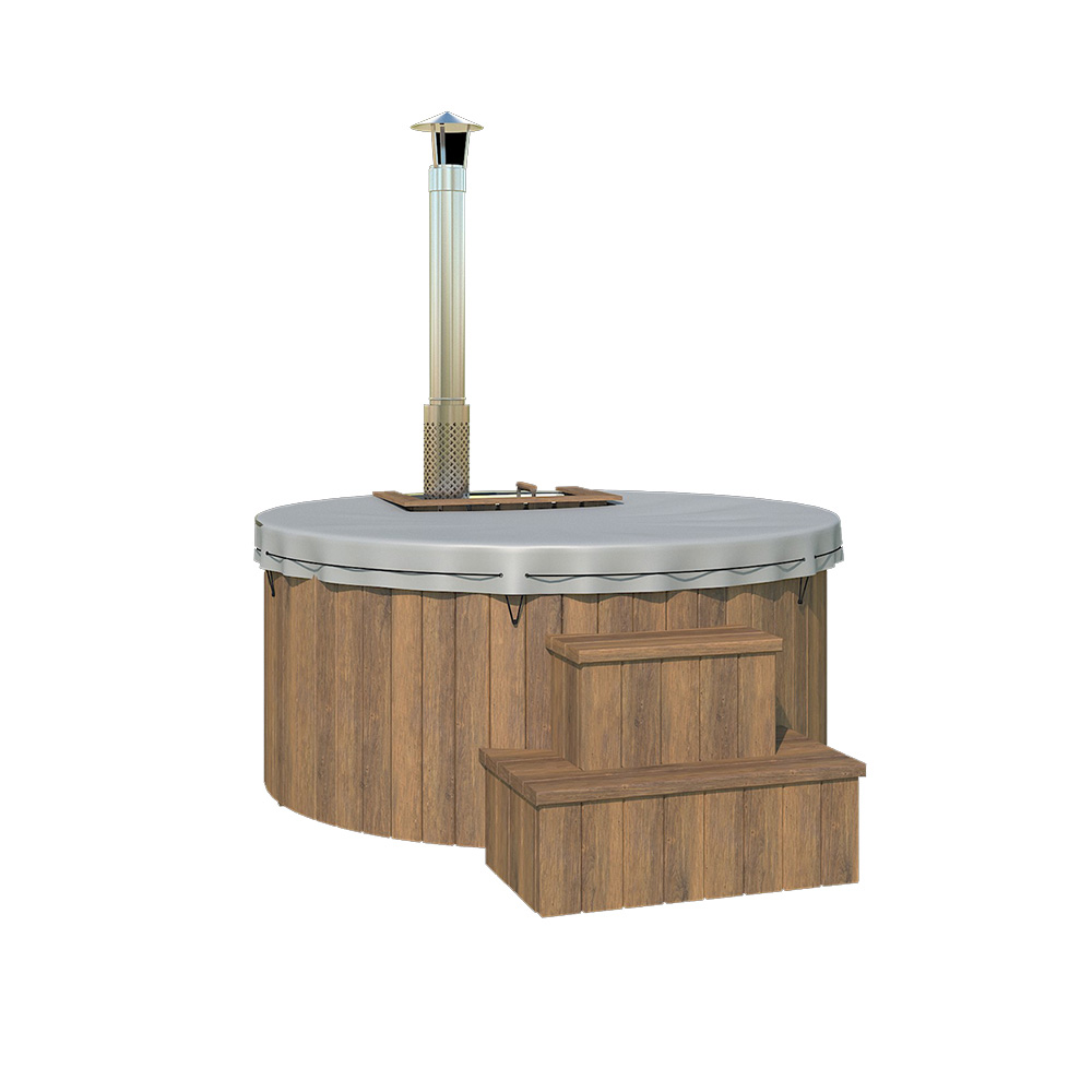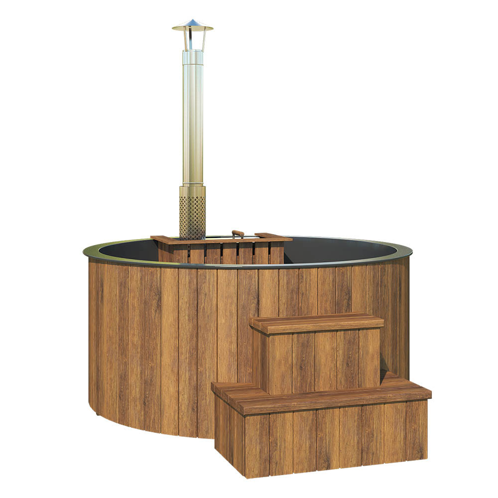 Den invändiga ugnen är av högkvalitativt rostfritt stål vilket innebär att du behöver använda mindre ved för uppvärmningen. Det lyxiga och snygga termoträhöljet runt om badtunnan hjälper också till att hålla värmen. Termoträ är ett av de bästa materialen för badtunnor och bastus då tillverkningen i hög temperatur ger det en hög hållbarhet och mindre benägenhet för att dra till sig fukt.