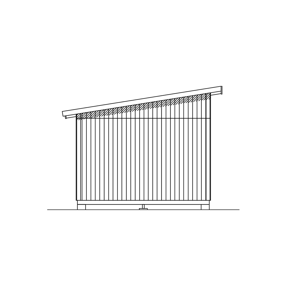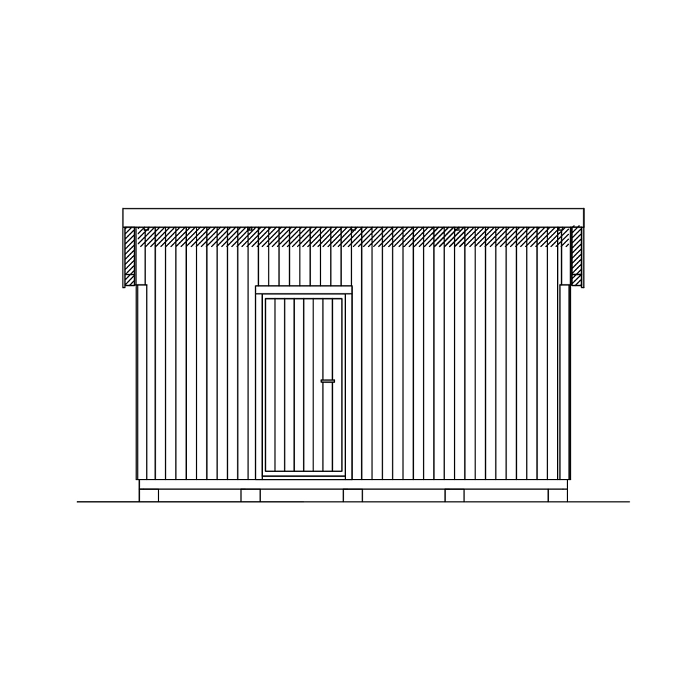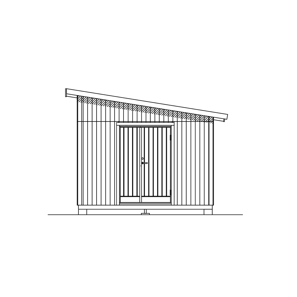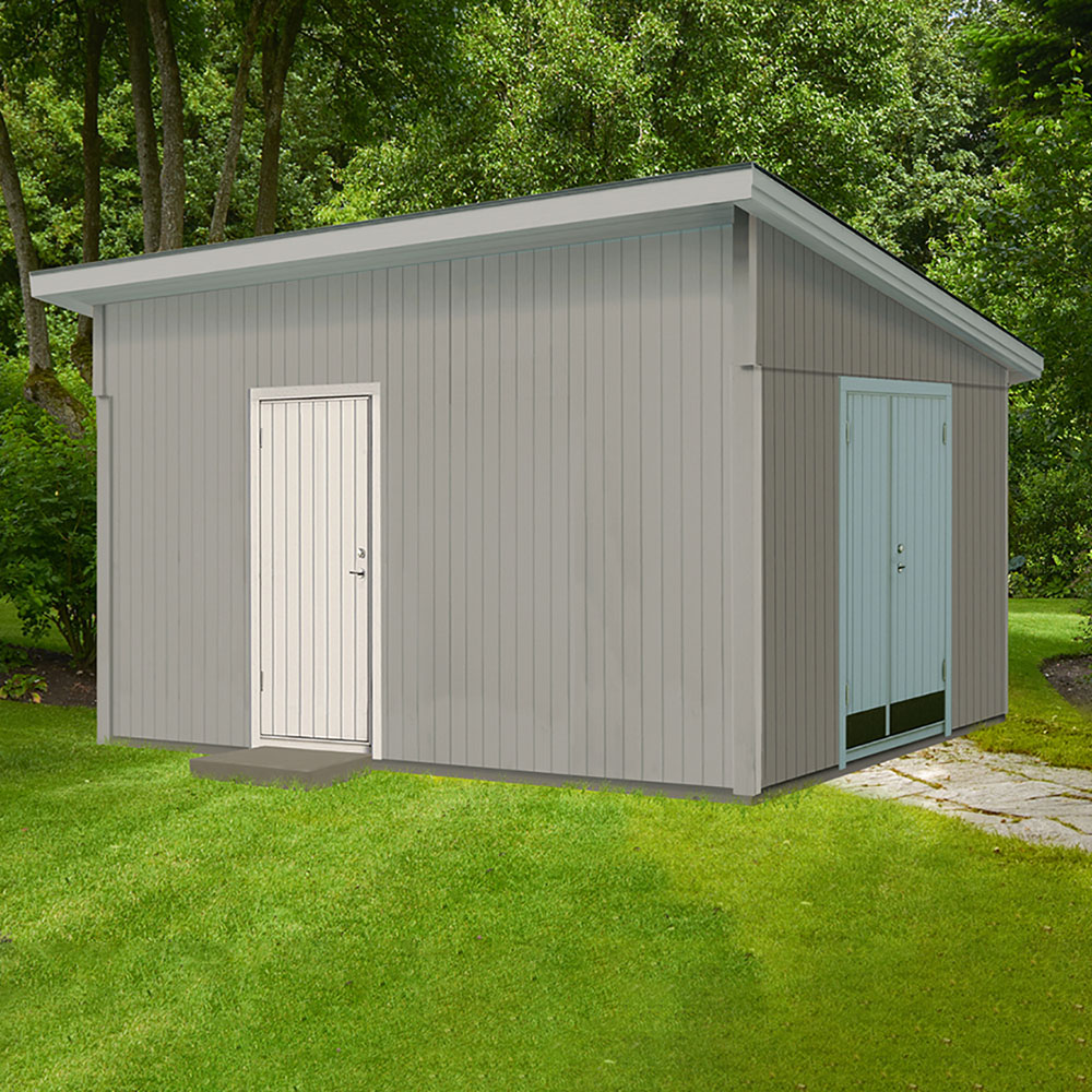 Knestorp från Vibostugan är ett rejält förråd i funkisstil med plats för både gräsklippare och trädgårdsmöbler. Här får du två ingångar med en enkeldörr på ena sidan och en bredare dörr på andra gaveln.