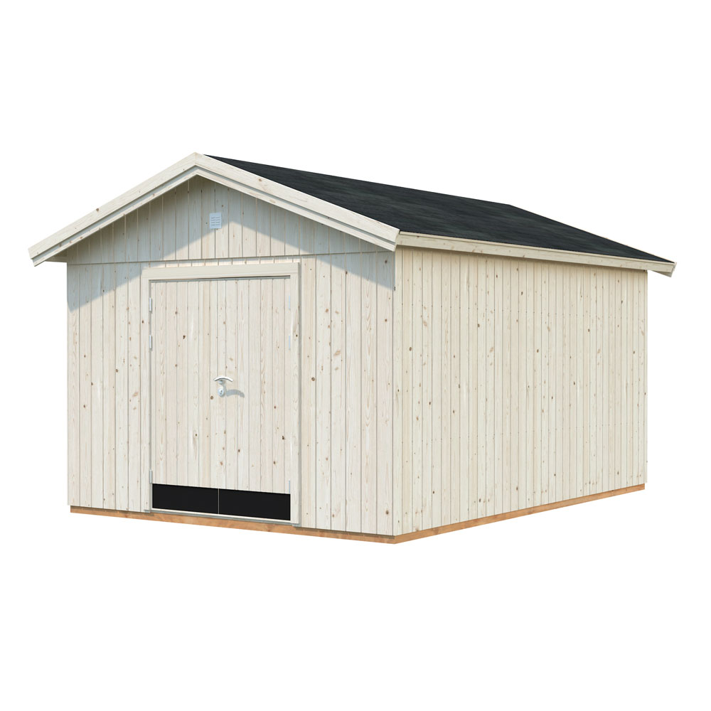 Levereras obehandlad och behöver grundoljas, grund- och täckmålas. Monteras med hjälp av utförliga monteringsanvisningar. Rekommenderas att vara placerad på ett fundament som är nedgrävt till frostfritt djup ex. egen gjutning eller på nedgrävda plintar. Ej snözonsklassad, håll därför taket rent från större mängder snö.