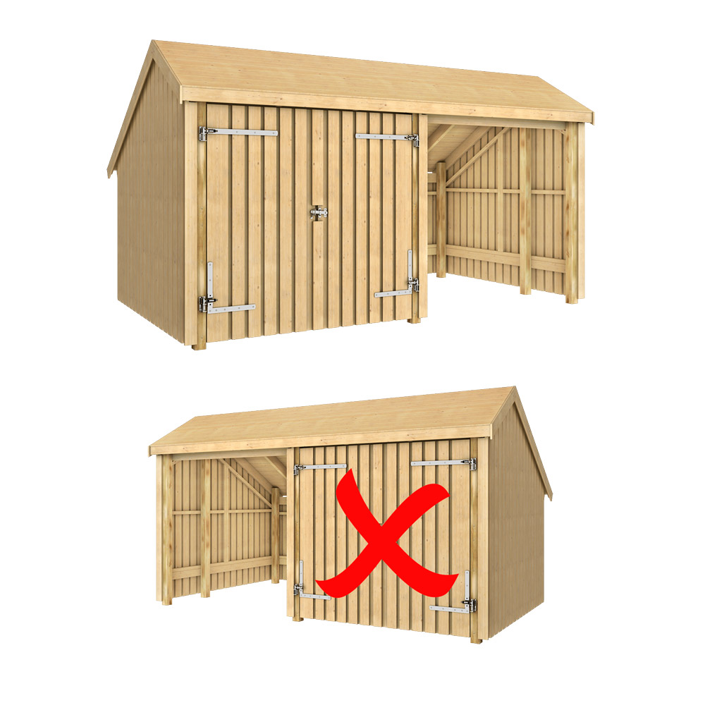 | Dubbeldörr | 193 × 190 cm, varmgalv. beslag, skjutregel, justerbara gångjärn |