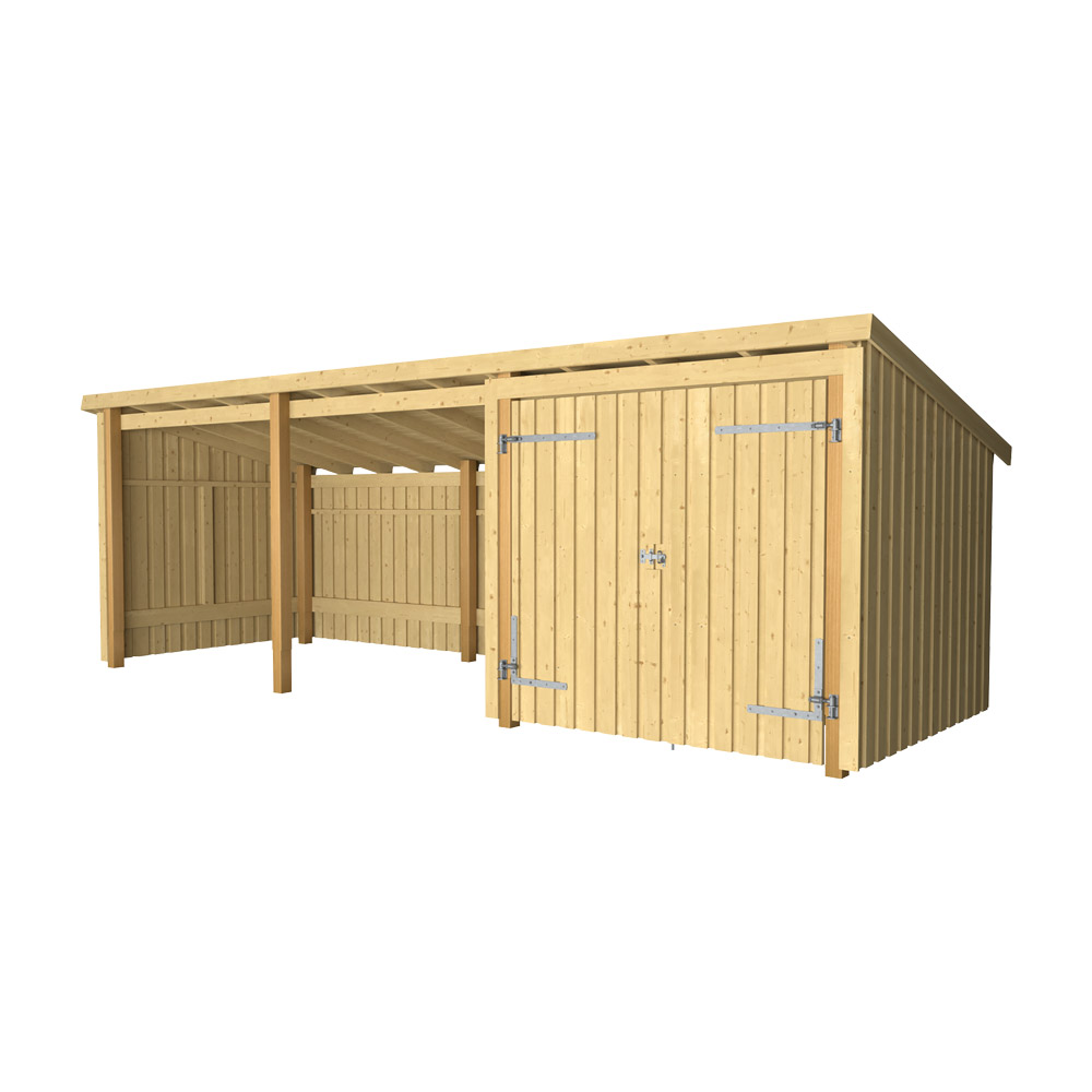 Här finns gott om plats för cyklar, trädgårdsredskap, maskiner och säsongsförvaring – samtidigt som den öppna fronten ger lätt åtkomst till det du använder ofta.