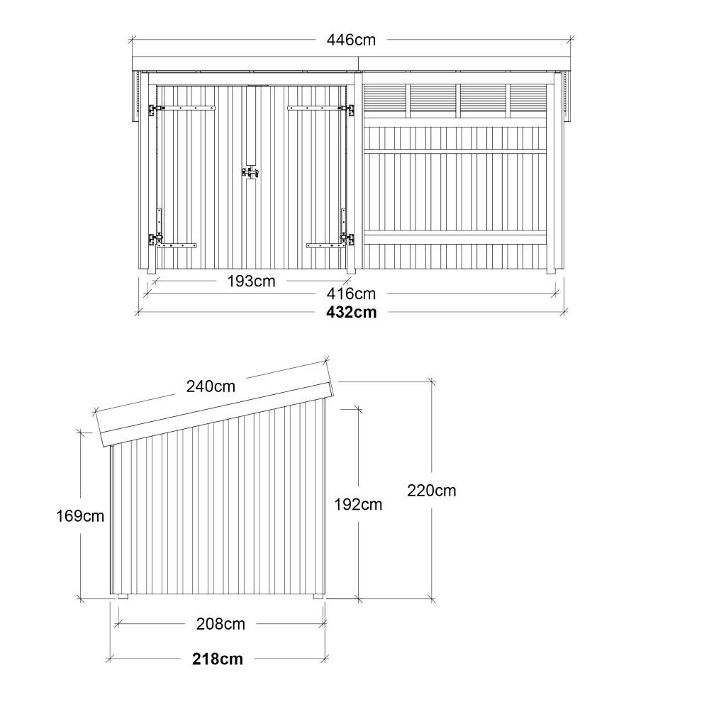 Nordic Multi trädgårdshus 9,5 m² med dubbeldörr och öppen front ger dig ordning och överblick över trädgårdens alla saker.
