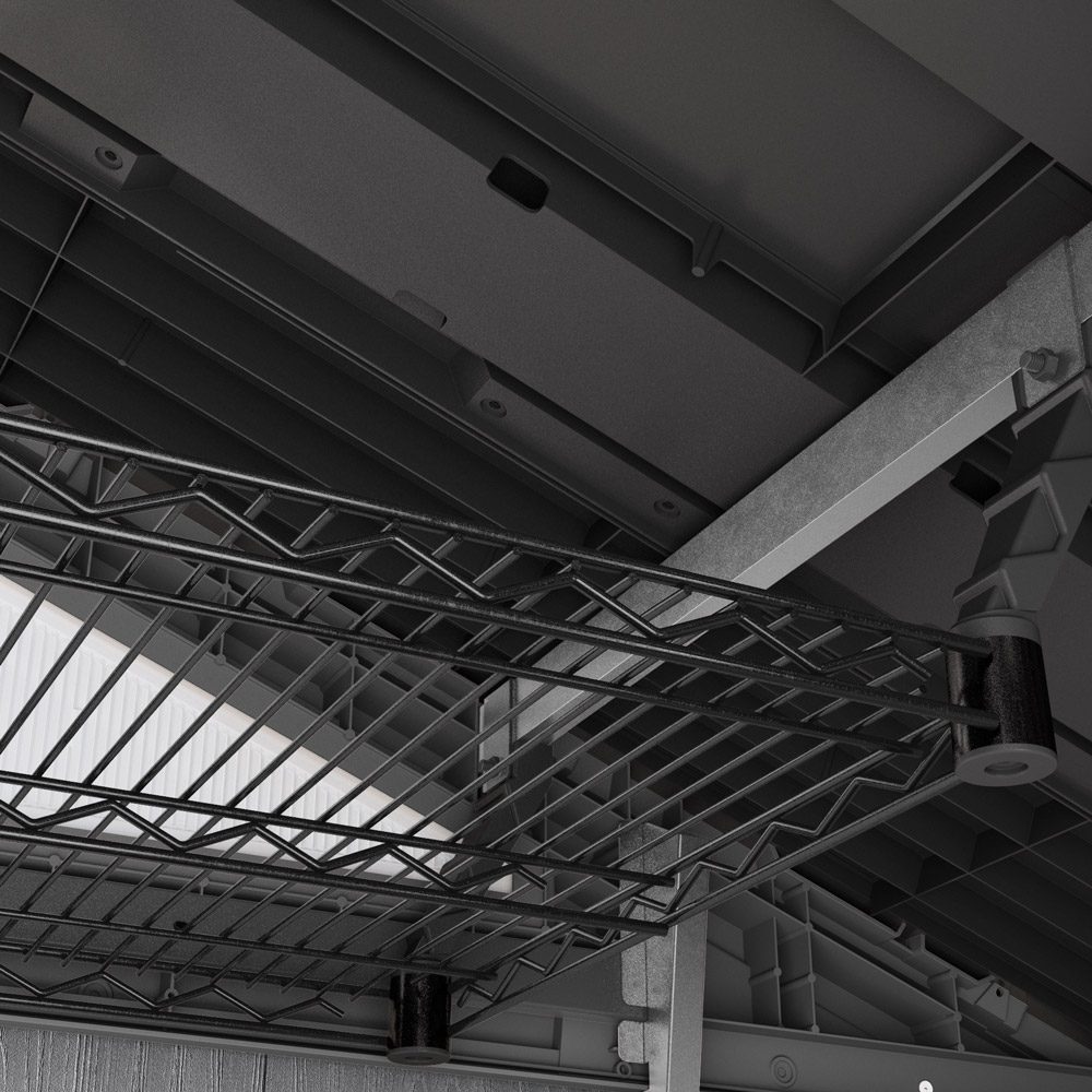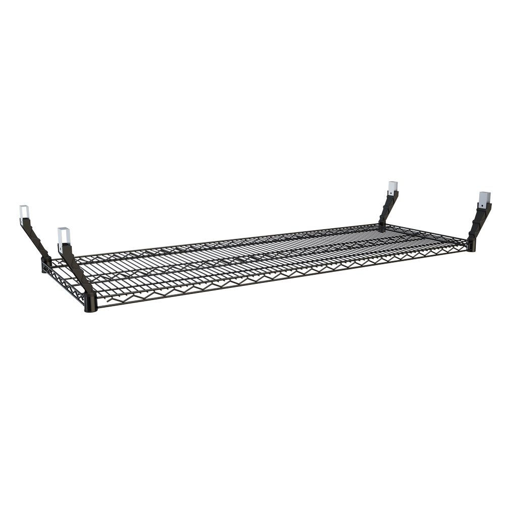 Den robusta stålkonstruktionen ger hög stabilitet och klarar en belastning på upp till 50 kg. Med generösa mått på 152,4 × 53,3 cm skapar du ett rymligt förvaringsplan ovanför bilen, arbetsbänken eller förrådsytan.