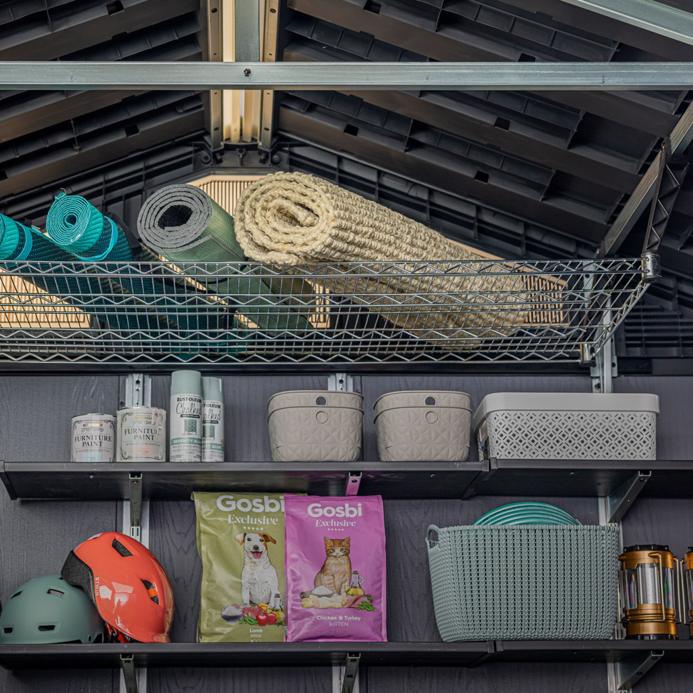 Frigör värdefull golvyta i garaget eller förrådet med Keter Lofthylla, en stabil takmonterad förvaringslösning som maximerar ditt outnyttjade utrymme. Perfekt för förvaring av säsongsartiklar, plastlådor, sportutrustning eller annat som du vill ha undan men lättillgängligt.