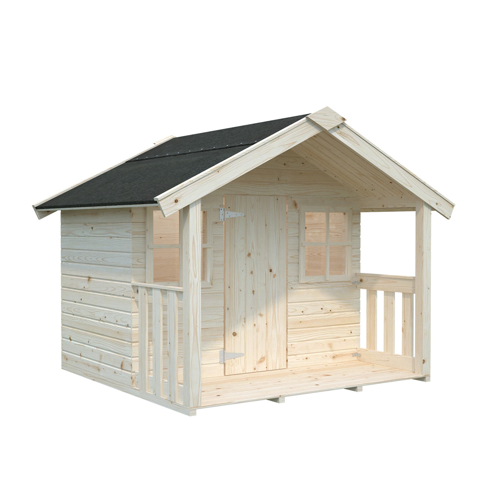 Lekstugan är obehandlad och måste grundoljas, grund- och täckmålas innan användning.
