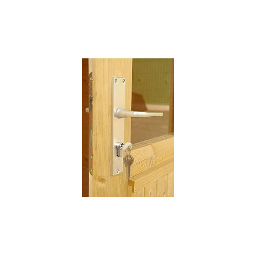 Lusthuset kommer med 4 st spröjsade isolerglas. Handtag med lås och golv ingår också.