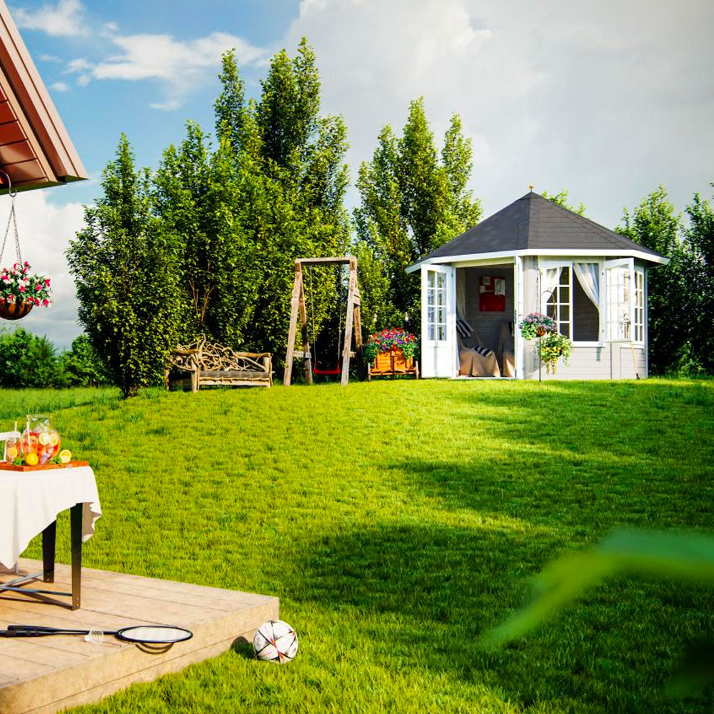 Skapa enkelt en härlig plats på tomten att dra sig undan till vid varma dagar eller om man bara vill slappna av lite och njuta av en kopp kaffe. Det vackra lusthuset är tillverkat i nordisk gran med många fina detaljer och förgyller alla typer av trädgårdar.